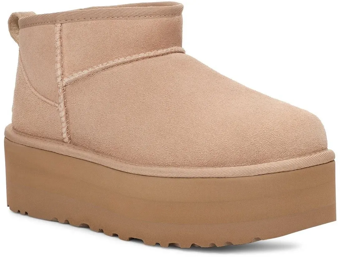 lieferbar-in 2-3 Werktagen bei dirUGG Australia UGG Classic Ultra Mini Platform Winterboots Plateaboots, Schlupfstiefel mit Plateausohle beige 40 EU (9 US)