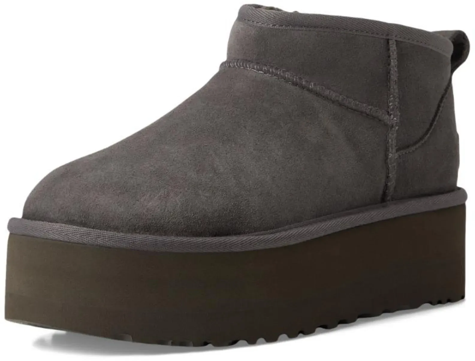 Kategorie: Stiefeletten - UGG Australia - GTIN:0194715081314 - Nur in ganzen Größen erhältlich. Wenn Sie zwischen zwei Größen sind, bestellen Sie bitte 1/2 Größe kleiner aus Ihrer üblichen Größe. 17 mm Twinface Schafsfell Obermaterial 17 mm Schafsfellfutter und -innensohle Treadlite by UGG Außensohle für Komfort Wasserabweisende Behandlung - 135,17 Euro bei Amazon Marketplace Shoes - gefunden von billiger.de Für 135.59 Euro erhalten Sie hier die "Classic Ultra Mini Platform", ein beliebtes Modell zu einem guten Preis. ![]() ![]() UGG Australia UGG Classic Ultra Mini Platform - - 40