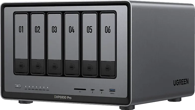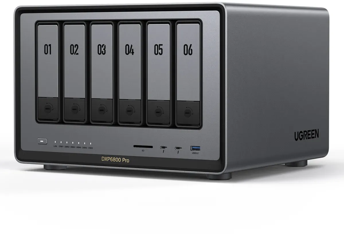 Kategorie: NAS Server - UGREEN - GTIN:6941876228997 - 6x SATA + 2x M.2 Einschub / Intel CoreTM i5-1235U Prozessor / 8GB DDR5 RAM (max. 64GB) / 128GB Flash Speicher / 2x 10GbE-LAN-Anschlüsse - 976,94 Euro bei notebooksbilliger - gefunden von billiger.de ![]() ![]() UGREEN NASync DXP6800 Pro NAS System 6-Bay