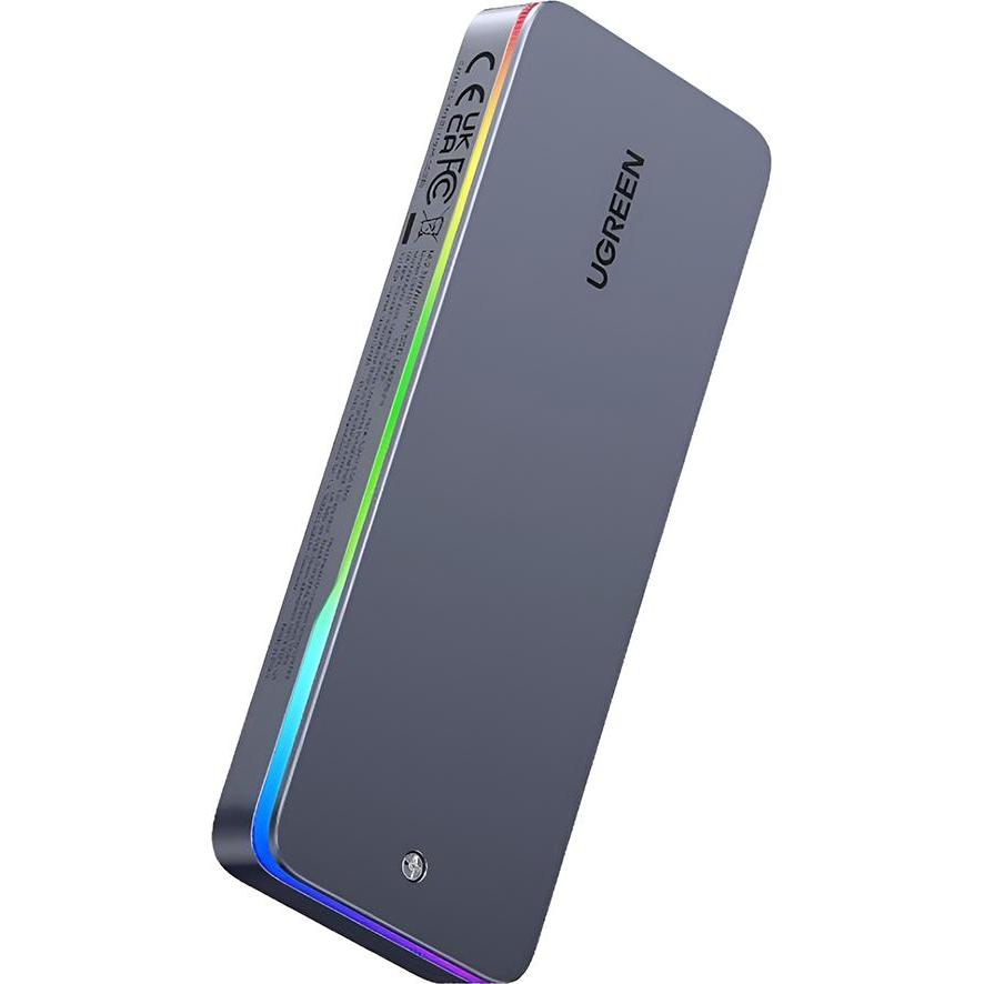 Kategorie: Externe Festplattengehäuse - UGREEN - GTIN:6941876251506 - ?Schnelle übertragung?Wenn das UGREEN M.2 Gehäuse an die Standardschnittstelle USB 3.2 GEN 2x2 angeschlossen wird, kann die theoretische übertragungsgeschwindigkeit 20 Gbps erreichen, was den Anforderungen an schnelles Lesen und Schreiben großer Dateien entspricht. (Beim Anschluss eines Macs kann nur eine maximale übertragungsgeschwindigkeit von 10 Gbit/s erreicht werden). ?NVMe & SATA? UGREEN M.2 20Gbps Gehäuse ist sowohl mit NVMe- als auch mit SATA-Festplatten kompatibel, sodass sie sich leicht an Speichergeräte mit unterschiedlichen Leistungsanforderungen anpassen und Ihre Datenverwaltungslösungen erweitern lassen. ?Intelligenter Chip?UGREEN M.2 SSD Gehäuse verfügt über einen hervorragenden Chip. UASP-Beschleunigung verbessert die übertragungseffizienz. S.M.A.R.T überwacht den Status der Festplatte in Echtzeit. TRIM-Befehl erhält die SSD-Leistung aufrecht. Von der Geschwindigkeit bis zur Sicherheit, es schützt Ihre Daten vollständig. ?Stabile Wärmeableitung?Das Aluminiumgehäuse des UGREEN M.2 SSD Gehäuses in Kombination mit den Silikonpads mit hoher Wärmeleitfähigkeit leitet die Wärme schnell ab und sorgt dafür, dass die Festplatte auch nach langer Nutzungszeit noch stabil läuft. ?Weite Kompatibilität?UGREEN M.2 SSD Gehäuse unterstützt Windows/MacOS/Linux-Systeme und ist mit bis zu 8TB-Festplatten kompatibel. Ob 4K-Videobearbeitung, Spielespeicher oder Datensicherung, alles ist in Reichweite. - 29,63 ... Dieses Gehäuse kombiniert hohe Geschwindigkeit (20 Gbps) mit einem ansprechenden RGB-Design und breiter Kompatibilität. ![]() ![]() UGREEN M.2 NVMe SATA SSD Gehäuse 20 Gbps mit RGB, USB C 3.2 Gen 2x2 M.2 Gehäuse für M Key/B+M Key in 2230/2242/2260/2280, kompatibel mit MacBook 2024 M4, HP 14pro, iPhone 17 pro max, PS5, Switch
