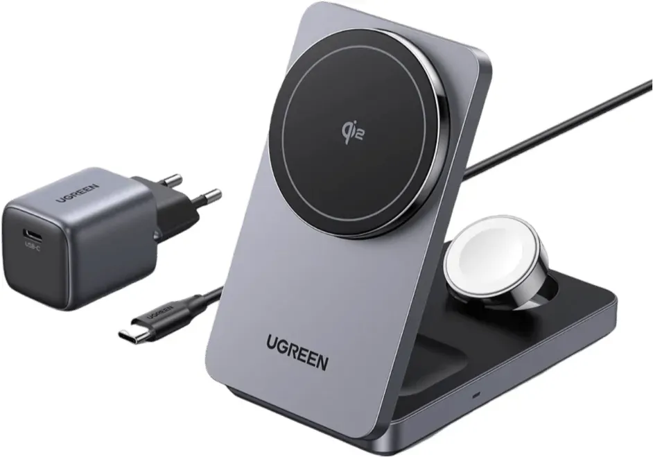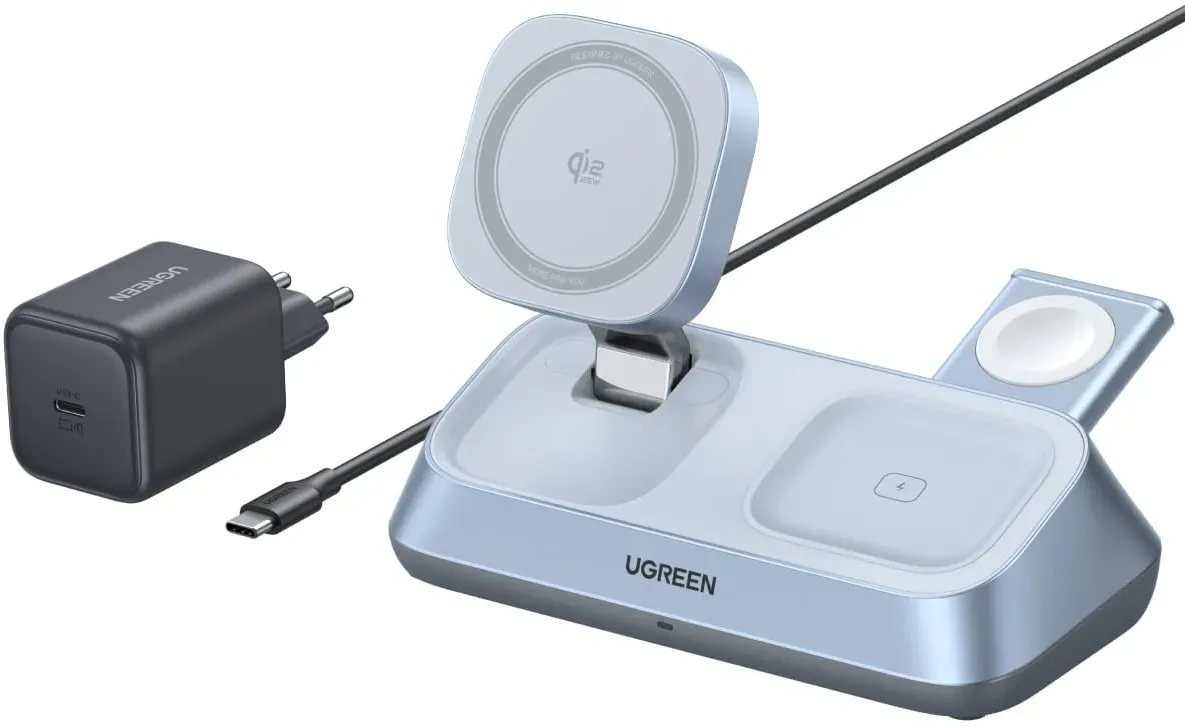 Kategorie: Handy Ladegeräte - ugreen de - GTIN:6941876257119 - Previous pageNext pagePrevious pageNext pagePrevious pageNext pagePrevious pageNext page - 59,99 Euro bei Ugreen - gefunden von billiger.de Diese 3-in-1 Ladestation für Apple Watch und iPhone bietet 15W Qi2 und eine 70° einstellbare Ladestation mit 45W Netzteil. ![]() ![]() UGREEN MagFlow 3-in-1 Ladestation für Apple Watch und iPhone, Qi2 Zertifiziert 15W Magsafe kompatibles Ladegerät, 70 einstellbare Ladestation für iPhone 16/15/14/13/Watch/AirPods, mit 45W Netzteil