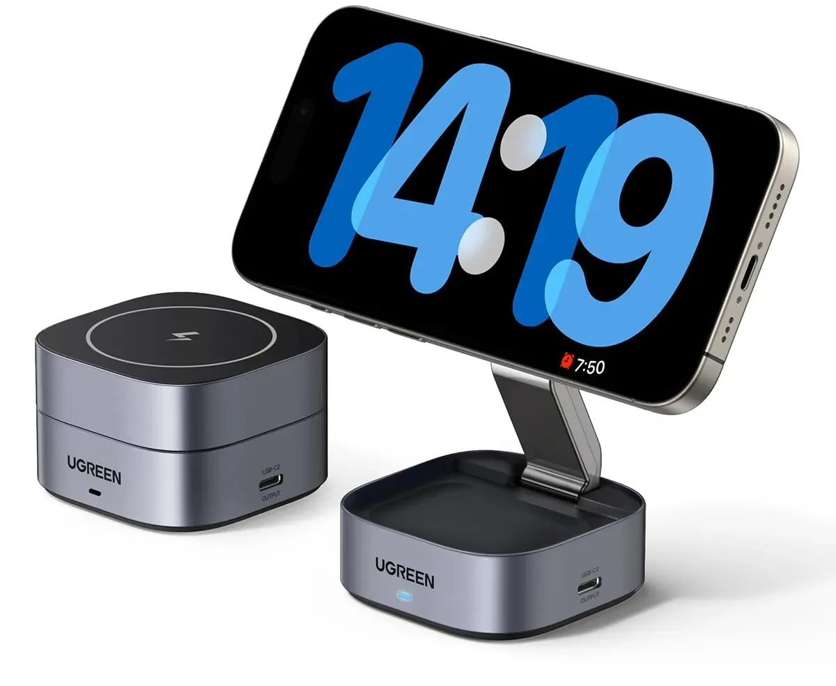 ![]() ![]() UGREEN MagFlow 2 in 1 iPhone Ladestation, kompatibel mit Magsafe Ladegerät, 90° verstellbares Wireless Charger, für iPhone 17/Air/17 Pro/17 Pro Max/16/15/14/13/12, AirPods, inkl. 1m USB-C Kabel
