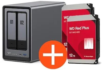 Sofort lieferbar, Lieferzeit max. 1-3 WerktageUGREEN NASync DXP2800 NAS System 2-Bay 24TB inkl. 2x WD WD120EFGX NAS HDD - 12 TB
