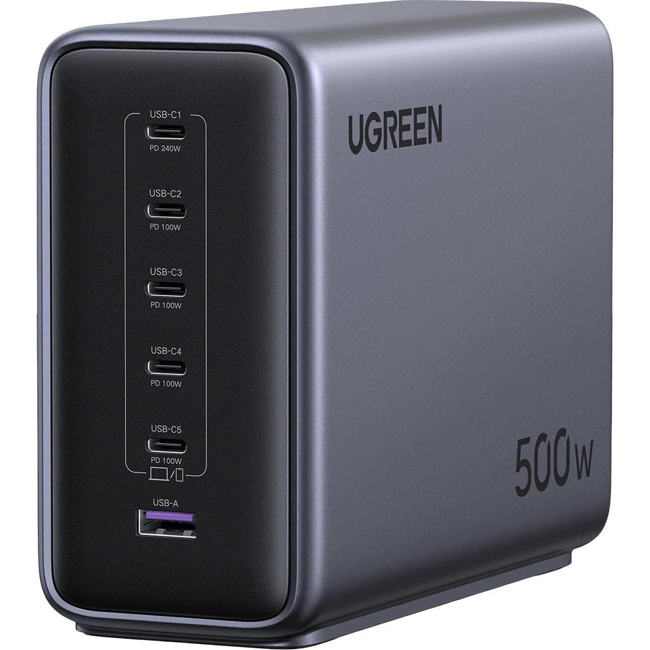 Auf Lager Versand durch AmazonUGREEN Nexode 500W USB C Ladegerät 6-Port Netzteil GaN Ladestation PD 3.1 Desktop Charger Mehrfach kompatibel mit MacBook, iPad Pro/Air, iPhone 17-8 Serie, Galaxy S25-S22