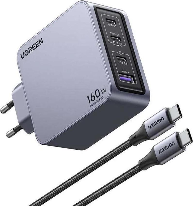Kategorie: Handy Ladegeräte - UGREEN - GTIN:6941876228775 - UGREEN Nexode Pro Ladeadapter 160W USB-C® Buchse, USB-C® Buchse, USB-C® Buchse, USB-A Buchse USB PD Schwarz, Grau Innenbereich - 73,74 Euro bei voelkner - gefunden von billiger.de ![]() ![]() UGREEN Nexode Pro 160W 4-Port GaN Fast Charger Set EU Wall Universal, Gray