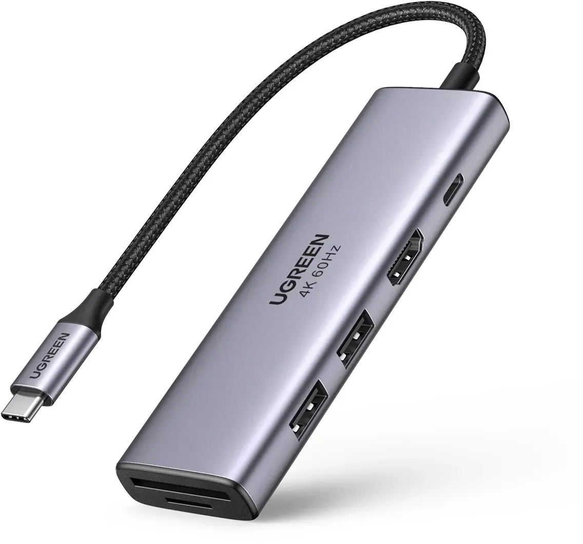 Kategorie: Zubehör für Speichermedien - UGREEN - GTIN:6941876212620 - Der USB-C-Adapter ist die ultimative Lösung, um mehrere Geräte gleichzeitig anzuschließen und das Potenzial wirklich zu maximieren. Es unterstützt 4K bei 30 Hz für kristallklare Bildqualität und nahtlose Videowiedergabe und ist somit ideal für Arbeit, Streaming oder Präsentationen.Der Adapter ist mit 3x USB 3.0-Anschlüssen für eine schnelle und effiziente Datenübertragung ausgestattet, sodass Sie von externen Festplatten bis hin zu Tastaturen und Mäusen alles anschließen können. Darüber hinaus verfügt es über einen HDMI-Anschluss, der eine hochauflösende Videoausgabe für ein erstklassiges visuelles Erlebnis liefert und sich perfekt für den Anschluss an Displays oder Projektoren eignet.SD-/TF-Kartensteckplätze erleichtern den schnellen Zugriff auf Ihre Dateien, Fotos und Dokumente, sparen Zeit und vereinfachen Ihren Alltag. Mit seinem kompakten Design und den erweiterten Funktionen ist dieser USB-C-Adapter ein unverzichtbares Werkzeug für Arbeit und Vergnügen. - 29,90 Euro bei Maxgaming.gg - gefunden von billiger.de Ein 6-in-1 USB-C Hub, der eine breite Palette an Anschlussmöglichkeiten in einem kompakten Design bietet. ![]() ![]() UGREEN 6-in-1 USB-C Hub