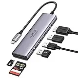 13 Händlerangebote bei billiger.de - Kategorie: USB-Hubs - UGREEN - Multiport für Multitasking: Der in einem Aluminumgehäuse untergebrachte USB C Multiport Hub ist mit einem 20cm langen Anschlusskabel ausgestattet und bietet einen PD-Ladeport, einen HDMI- sowie zwei USB-A-Anschluss sowie Steckplätze für SD- und MicroSD-Karten. Wirklich eine gute Alternative zur Funktionserweiterung des Laptops. 4K@60Hz USB-C zu HDMI Adapter: Mit diesem USB C HDMI Hub können Sie Videos mit HDMI-Anschluss von Ihrem Laptop auf externen Monitor streamen oder erweitern. Hohe Auflösung mit 4K@60Hz sorgt für Ausgabe von erstklassiger Bildqualität und flüssigen Videoszenen. 100W PD für langen Betrieb: Der USB C Hub mit PD Port versorgt Ihren USB C Laptop mit genug Strom für langen Betrieb und stabile Verbindung.Beim iPad, der nur einen USB C Anschluss hat, gibt der Hub gleichzeitige Lademöglichkeit während paralleler Filmausgabe über USB-C an HDMI. Kein Lag für Datenübertragung: 2 USB 3.0 Anschlüsse liefern blitzschnelle Transferrate von bis zu 5Gbps und lassen 1G Dokumente innerhalb von nur 5 Sekunden transferieren. SD/TF Kartenleser lassen 100 Fotos innerhalb von nur 10 Sekunden übertragen und verleihen ein außergewöhnliches Foto-Sharing-Erlebnis. Breite Kompatibilität: Der USB C Hub mit 4K bei 60Hz ist kompatibel mit neuen USB-C Laptops / Tablets / Smartphone - Macbook Pro 2021 2020 2019 2018, MacBook Air M1 2020, iPad Pro 2021/2020 (11',12.9'), Surface Pro 7, ASUS Zenbook Flips, DELL XPS 13 Book ... Diese Dockingstation mit 6 Ports ist eine umfassende Lösung für Nutzer, die viele Peripheriegeräte an ihr USB-C Gerät anschließen möchten. ![]()