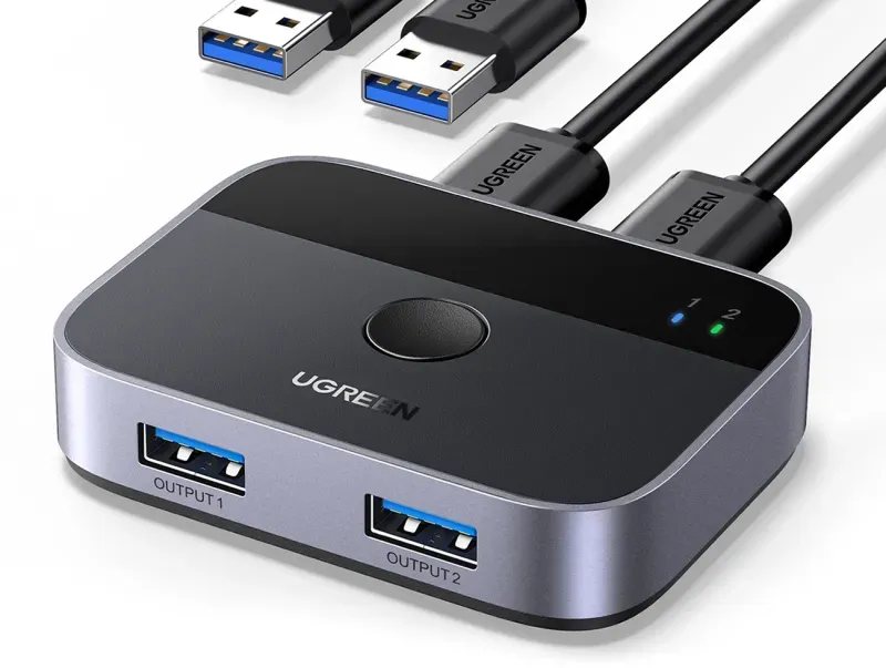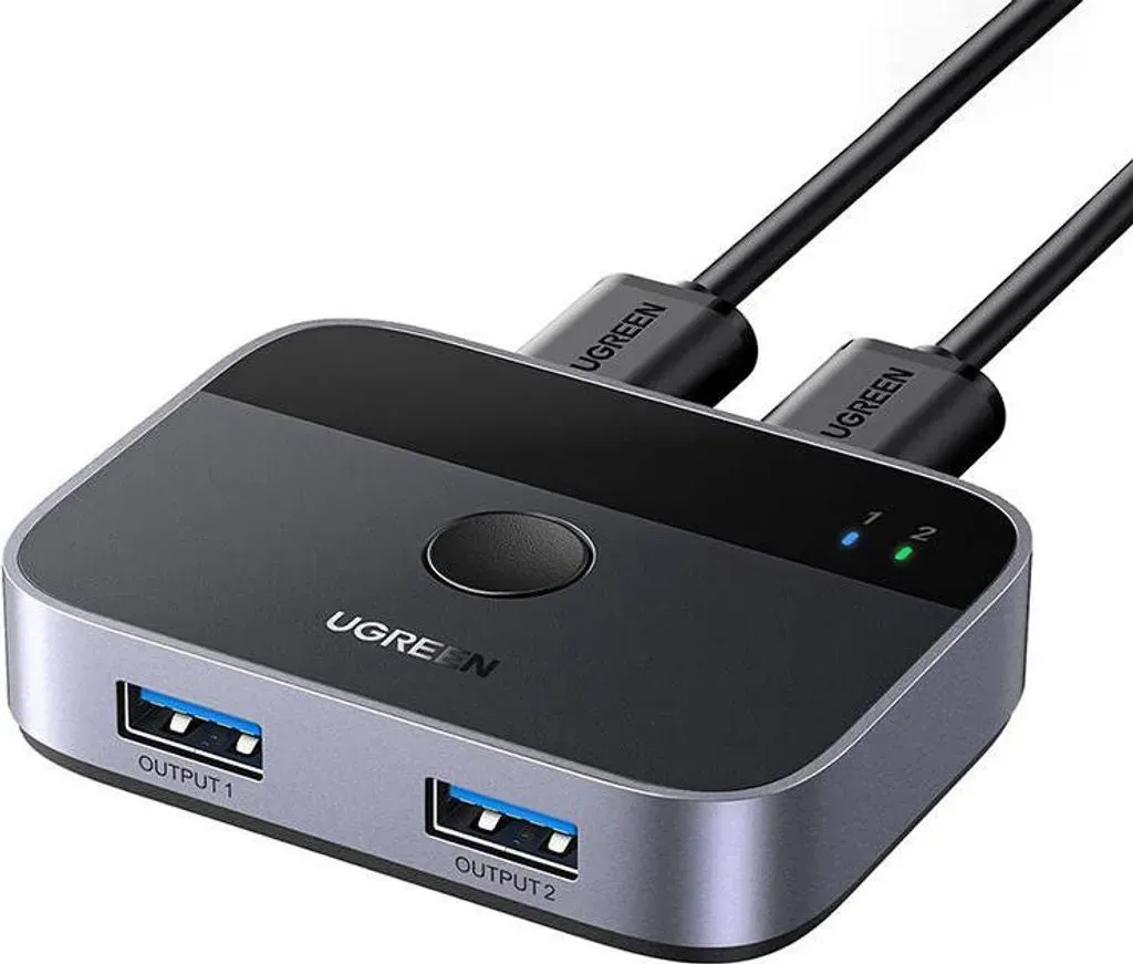 Auf Lager Versand durch AmazonUGREEN USB Switch 2PC 2 In 2 Out 5Gbps USB Umschalter mit 2*A auf A Kabel für Tastatur, Maus, Drucker, Festplatten, Kameras usw.