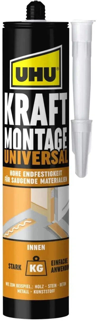 ![]() ![]() UHU Kraft Montage Universal ? starker Montagekleber 435g, klebt Holz, Stein, Beton, Metall & Styropor, lösemittelfrei, elastisch, fugenfüllend & überstreichbar