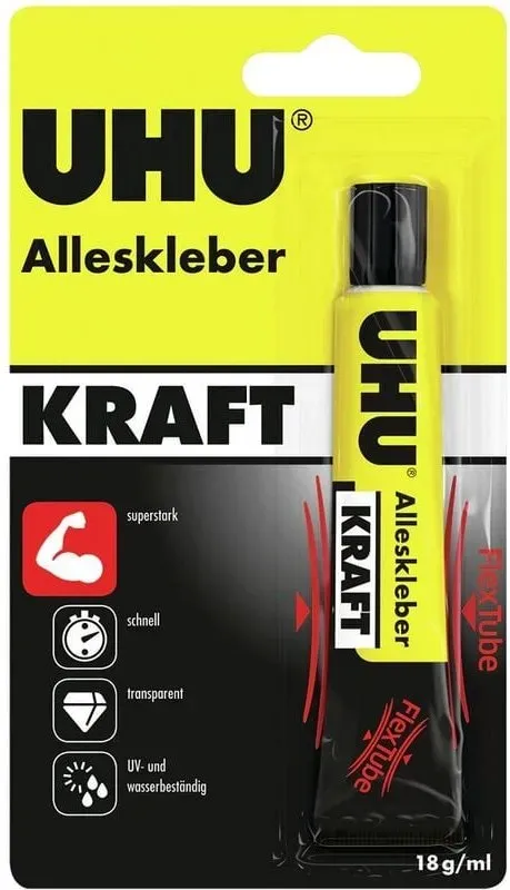 Uhu kraft META PreisvergleichMit dem Meta-Preisvergleich suchen Sie gleichzeitig bei den großen Preisvergleich Portalen!Jetzt live Suche nach uhu kraft starten! Uhu kraft KaufberatungBeim Kauf von UHU Kraft sollten Sie vor allem auf die Art des Klebers, die Materialverträglichkeit und die Anwendungsmöglichkeiten achten. Der UHU Kraft Alleskleber ist ein gelartiger, gebrauchsfertiger Kleber mit außergewöhnlicher Klebekraft, der sowohl für harte als auch flexible Materialien geeignet ist. Er klebt schnell, superstark und bleibt elastisch, was ihn ideal für sichtbare Klebefugen und transparente Materialien macht. Er ist wasser-, öl- und fettbeständig und kann sogar unter Wasser verwendet werden[1][3]. Wichtig ist, dass UHU Kraft nicht für Polyethylen, Polypropylen und Polystyrol geeignet ist. Außerdem sollten Sie bei der Anwendung auf die Gefahrenhinweise achten, da der Kleber leicht entzündlich ist und bei wiederholtem Hautkontakt spröde oder rissige Haut verursachen kann[1]. Beliebte Produktmerkmale sind: