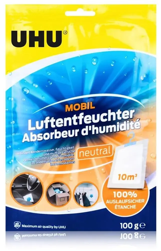 Für Ihre Suche nach 'UHU Luftentfeuchter' empfiehlt sich vor allem der UHU Airmax mit 450 g oder 1000 g Granulat, wenn Sie eine stromlose, geräuschlose und kostengünstige Lösung für kleine bis mittelgroße Räume suchen. Für größere Räume oder stärkere Entfeuchtung sind elektrische Geräte besser geeignet, die aber teurer und lauter sein können. Hier können Sie direkt nach UHU Luftentfeuchtern suchen und Preise vergleichen: Jetzt live Suche nach uhu luftentfeuchter starten! Empfohlene Uhu luftentfeuchter Angebote*Durch Käufe über Links zu Händlern kann diese Website eine Provision erhalten, u.a. durch das eBay Partner Network und das AmazonPartnerNetDieser UHU Air max Luftentfeuchter mobil ist mit Auslaufschutz ausgestattet und somit perfekt für den Einsatz in Fahrzeugen oder Wohnwagen geeignet. ![]() ![]() UHU Air max Luftentfeuchter mobil mit Auslaufschutz für Auto, Wohnwagen uvm.