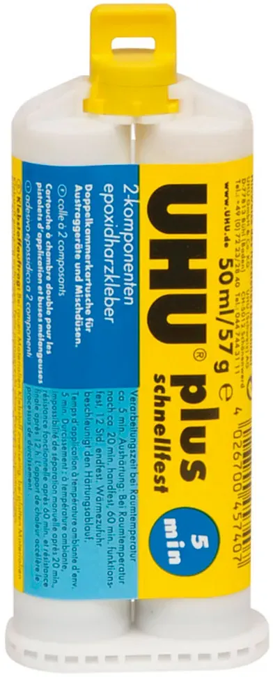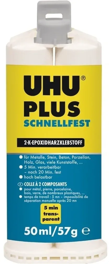 Kategorie: Klebeprodukte - UHU - GTIN:4026700456707 - UHU Zweikomponentenkleber PLUS ENDFEST für höchste Belastungen. Die Klebeverbindung ist schlagfest, alterungs- und feuchtigkeitsbeständig. - 15,22 Euro bei voelkner Marktplatz - gefunden von billiger.de Dieses 50ml-Angebot für UHU plus schnellfest für 19,80 Euro ist ideal für größere Projekte. ![]() ![]() UHU plus schnellfest 50ml