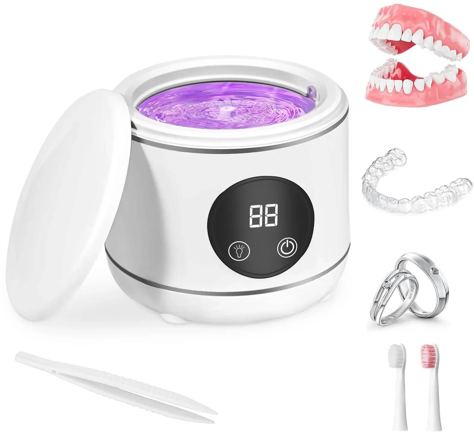 Kategorie: Sonstige Reinigungsgeräte - weslery - 360 Tiefenreinigung Unser Ultraschallreiniger verwendet eine Ultraschallfrequenz von 45 kHz, um eine 360 Tiefenreinigung zu erreichen, die alle Ecken und Winkel erreicht, die manuell schwer zu reinigen sind. Entfernt gründlicher und effizienter Partikel und Schmutz auf Zahnprothesen, Zahnspangen, Zahnschienen, Zahnaufhellungsschienen, Mundschutz, Schmuck, Zahnbürstenköpfen und Uhrenarmbändern. Ausgestattet mit einer Pinzette können Sie Gegenstände leicht herausnehmen. Diese Ultraschallreinigungsmaschine macht die tägliche Reinigung einfach und effizient. U-V-Ultraschall-Zahnspangenreiniger Unser Ultraschallreiniger verfügt über eingebautes UV-Licht, um eine Sterilisationsrate von 99,99 % zu gewährleisten und Ihre zahnärztlichen Instrumente effektiv zu sterilisieren. Und dieser Zahnprothesenreiniger besteht aus langlebigem 304-Edelstahl und ABS-Materialien, wodurch er leicht zu pflegen und korrosionsbeständig ist. Verwenden Sie unsere Zahnspangenreinigungsmaschine, um Ihre persönlichen Gegenstände jeden Tag wie neu zu halten und Ihnen Vertrauen in Ihre Mundpflege zu geben. (Tipp: Bitte schalten Sie das UV-Licht aus, bevor Sie den Deckel öffnen.) 3 Reinigungsmodi Unser Zahnpolierer für Zahnflecken bietet 3 verschiedene Reinigungszeitoptionen (5 Minuten, 8 Minuten, 10 Minuten). Allgemeine Reinigung: Drücken Sie den Netzschalter einmal, um die Reinigung für 5 Minuten zu starten. Tiefenreinigung: Drücken Sie den Netzschalter ... ![]() ![]() Ultraschall-U-V Retainer Reiniger, Weslery 230 ml Retainer Reinigungsgerät für Zahnersatz Mundschutz Aligner Bürstenkopf Schmuck Uhrenarmband Ultraschallreiniger mit drei Modi für den Einsatz (White)