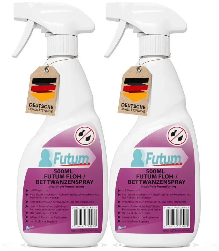 lieferbar-in 4-5 Werktagen bei dirFUTUM Insektenspray Anti-Bettwanzen-Spray Floh-Mittel Ungeziefer-Spray, 2-St., biozidfreie Formulierung, auf Wasserbasis, brennt / ätzt nicht
