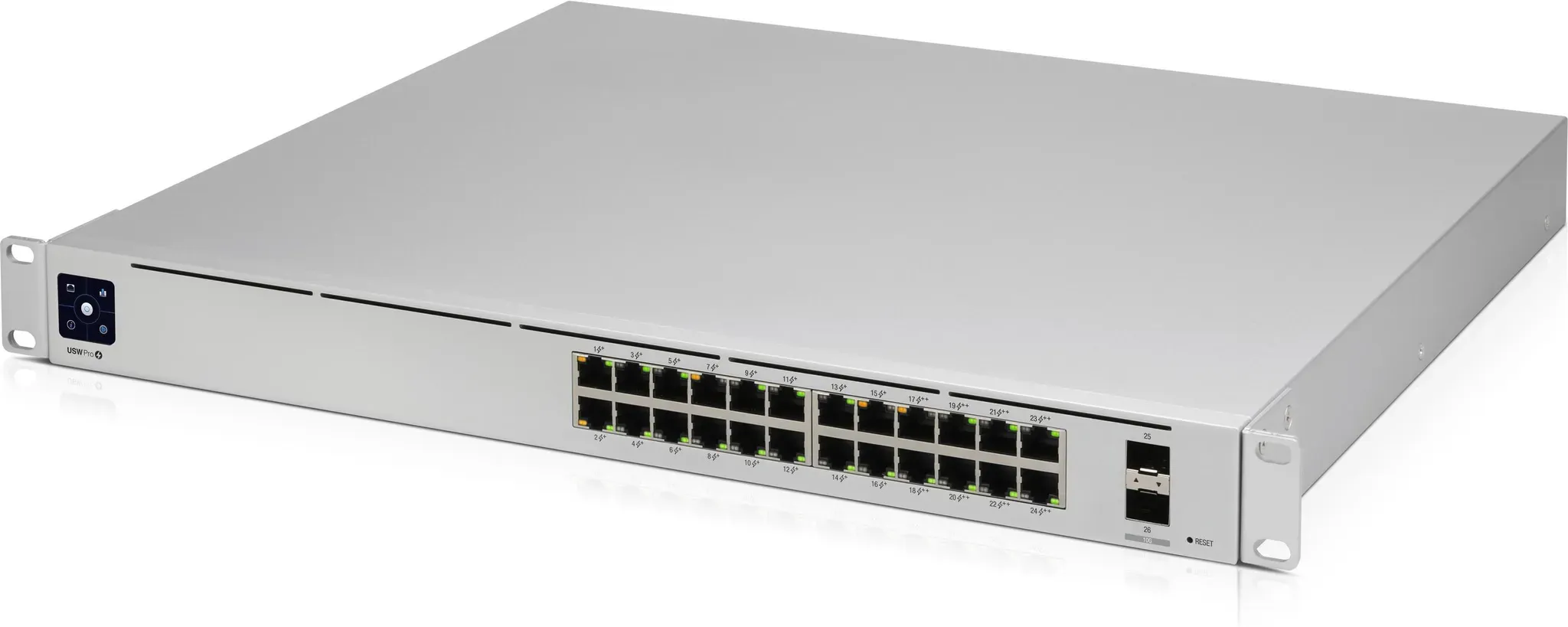 Kategorie: Netzwerk-Switches - UBIQUITI networks - GTIN:8100100706238 - Der UniFi Switch Pro 24 ist ein vollständig verwalteter Layer-3-Switch mit Gigabit-Ethernet-Ports. 10G SFP+-Uplinks bieten Link-Aggregation für höhere Kapazität und bessere Verfügbarkeit. Der UniFi Switch Pro 24 verfügt über ein umfangreiches Set an Layer-2-Funktionen und integriert Layer-3-Funktionen wie Inter-VLAN-Routing, statisches Routing und DHCP-Server. Er ist ein idealer Aggregations- und Access-Layer-Switch für jede UniFi-Lösung. Der Switch kombiniert innovative, nahezu geräuschlose Kühlung mit UniFi SmartPower RPS-Stromredundanz. Mit dem UniFi Network Controller und der UniFi Network Mobile App können Administratoren praktisch alle Funktionen des Switches in einer intuitiven grafischen Benutzeroberfläche von überall aus konfigurieren und überwachen. - 368,00 Euro bei Galaxus.de - gefunden von billiger.de Ein Managed L3 Switch mit 24 Gigabit Ports und 2 SFP+ Uplinks, der eine gute Basis für anspruchsvollere Netzwerke bildet. ![]() ![]() UbiQuiti UniFi Switch USW-Pro-24 - Switch - L3 - managed - 24 x 10/100/1000 + 2 x 10 Gigabit SFP+ (Uplink)