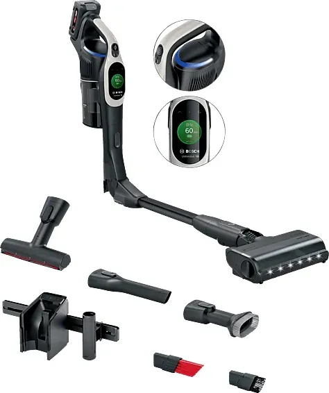 Auf Lager Versand durch AmazonBosch Akku-Staubsauger Unlimited 10 BKS1051GQC, kabellos, MicroClean Technology, TFT-Display, Staubkomprimierung, HEPA-Filtersystem, 10 J. Motorgarantie, 4 Ah Akku, LED-Licht, Schnellladegerät, grau