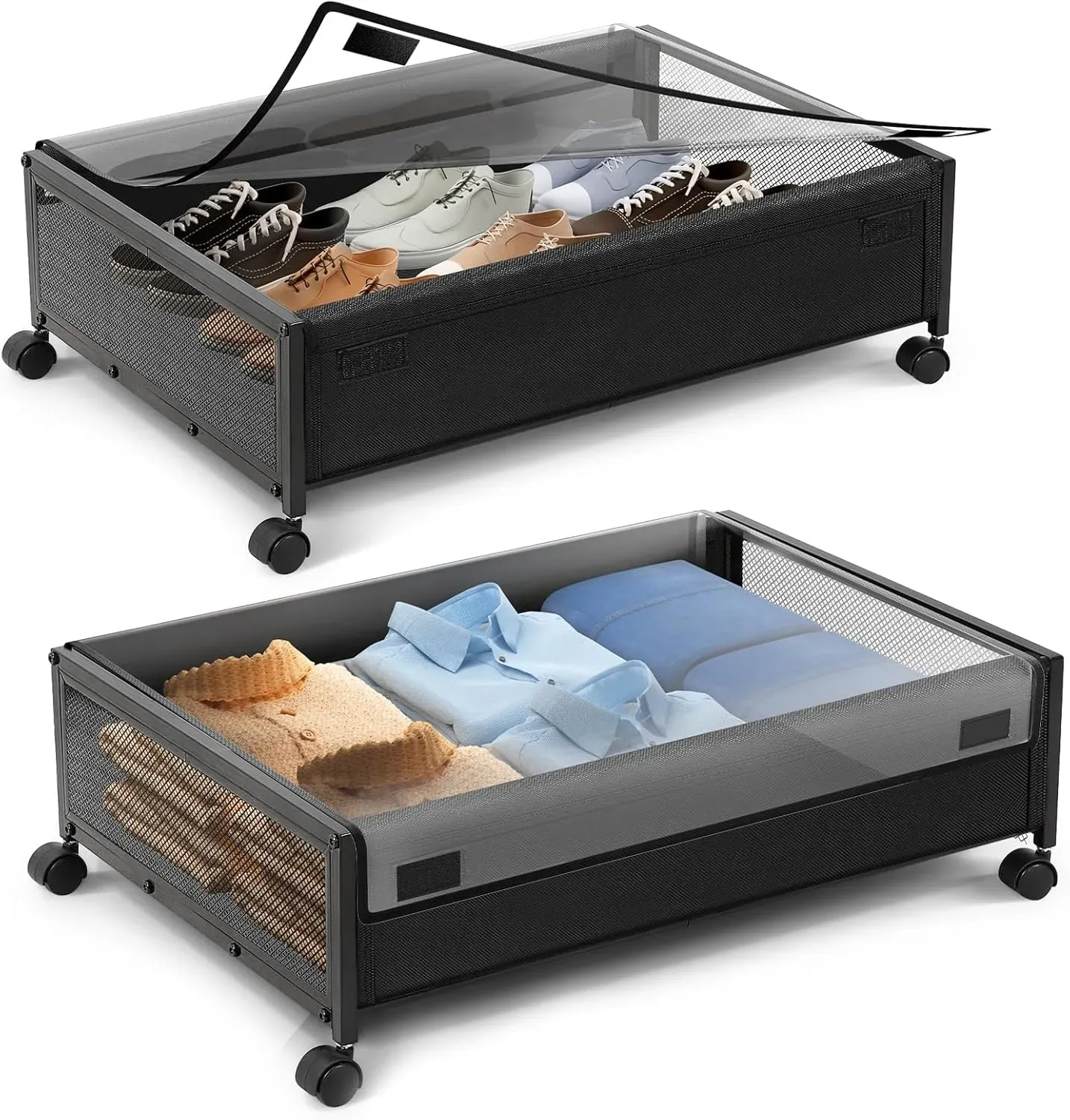 Auf Lager Versand durch AmazonSibosen Unterbett Aufbewahrungsbox Unterbettkommode mit Rollen Deckel 65-82L Metallrahmen Bettkasten Organizer Aufbewahrungstasche Faltbare Unterbettbox fr Kleidung Schuhe Decken Bettwsche,Grau