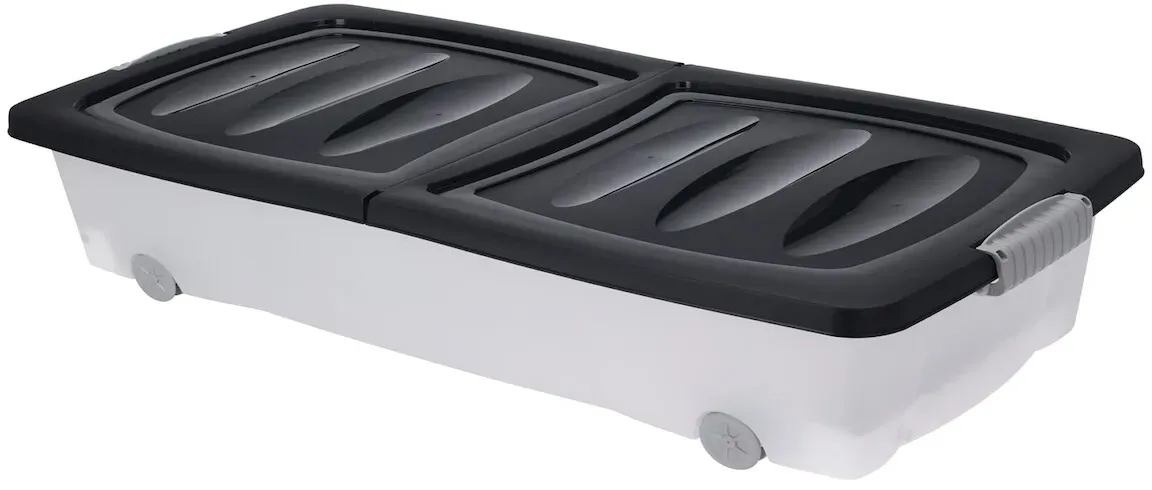Verfügbarkeit: Auf Lager - Kategorie: Aufbewahrungsboxen - glflow - Faltbare Aufbewahrungsbox: Diese faltbare Box schafft Platz im Schrank und hält wichtige Dinge immer griffbereit, perfekt für Kleidung, Spielzeug oder saisonale Gegenstände, ohne Ihr Zuhause zu überladen. Organizer-Mobilität: Leichtgängige 360° drehbare Räder ermöglichen ein einfaches Herausnehmen und Aufbewahren von unter Möbeln, wodurch es mühelos ist, Gegenstände auch in engen Räumen zu erreichen. Schutz des Rollbehälters: Dicker, staubdichter Deckel sorgt dafür, dass der Inhalt sauber und ordentlich angeordnet bleibt, während der Langzeitlagerung Schmutz oder Tierhaaren ausgesetzt ist. Langlebige Verarbeitungsqualität: Hergestellt aus robustem 600D-Oxford-Gewebe mit verstärkten 750-Plattenplatten, bietet zuverlässige Struktur und Unterstützung, die dem täglichen Umgang im Laufe der Zeit standhält. Platzsparendes, faltbares Design: Die zusammenklappbare Konstruktion lässt Sie flach zusammenfalten, wenn nicht in Gebrauch, ermöglicht eine kompakte Aufbewahrung in Kleiderschränken oder Schränken und schnelle Einrichtung, wenn nötig. - 14,50 Euro bei Amazon Marketplace Kitchen - gefunden von billiger.de Für 16.95 Euro erhalten Sie eine transparente Unterbettbox mit farblich sortiertem Deckel, ideal für eine einfache Organisation. ![]() ![]() Unimet Unterbettbox mit Rollen 60x40x18cm, Box transparent, Deckel farblich sortiert