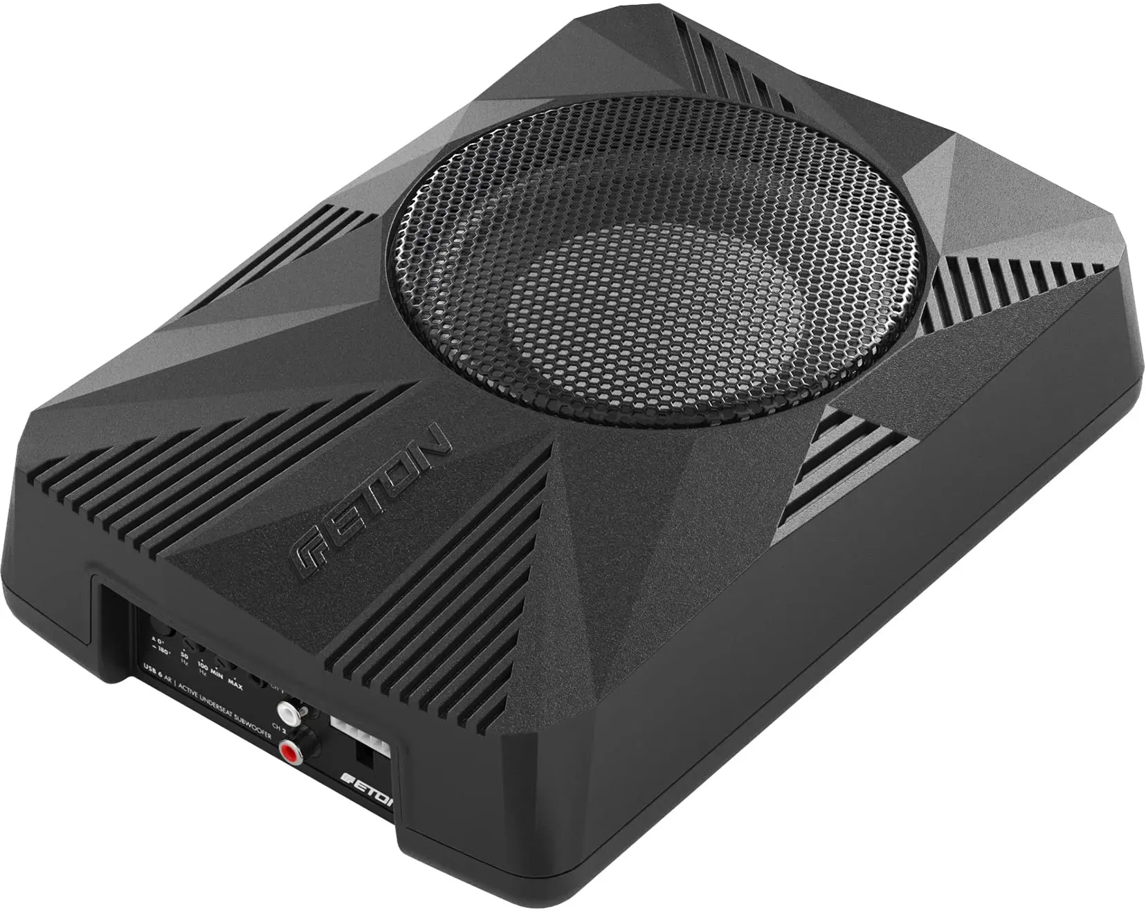 Kategorie: Car Subwoofer - ETON - GTIN:4039449100473 - Der ETON Aktiv Subwoofer USB 10 AR ist eine platzsparende Basslösung für PKWs, Cabrios, Reisemobile, Oldtimer oder LKWs. Kompakter geht es kaum wenig größer als eine DIN A4 Seite und minimale 77 mm hoch, lässt sich die aktive Basskiste fast überall im Auto verbauen, speziell unter dem Fahrer- oder Beifahrersitz. Das massive Gehäuse des Untersitz Subwoofers besteht aus pulverbeschichtetem Aluminium-Druckguss und ist extrem robust und belastbar. Aufgrund der speziellen Gehäusestruktur, die in einer vergrößerten Oberfläche resultiert, kann die entstehende thermische Energie optimal abgeben werden. Der an das Gehäusevolumen angepasste 25 cm / 10 Langhub-Woofer mit Aluminium-Membran und 2 x 2 Ohm Doppelschwingspule ermöglicht eine druckvolle Basswiedergabe. Der integrierte Verstärker liefert satte 350 Watt. Der Unterseat Bass verfügt über einen Cinch (RCA) / Low-Level Eingang sowie über einen Kombi-Anschlussstecker mit integriertem Hochpegeleingang (High-Level Input) zum Anschluss an Werksradios ohne Cinchausgang. Ein Phaseshift (0 /180 ), ein integriertes Tiefpassfilter, regelbar von 50 100 Hz, und eine Kabel gebundene Basspegelfernbedienung runden das Package ab. Der USB 10 AR ist für Fahrzeuge mit Start-Stopp-Funktion geeignet. Modernes ansprechendes Design mit smarten Abmessungen, beeindruckende 350 Watt, German Engineering und Top-Verarbeitung zeichnen diesen ETON Underseat Aktivsubwoofer aus. Der edel designte Gehäuse ... Das JBL BassPro Nano Set ist ultrakompakt und liefert mit 200 Watt einen kraftvollen Bass, ideal für kleine Fahrzeuge. ![]() ![]() JBL BassPro Nano Ultra-Kompaktes Untersitz Subwoofer Set 15x20 cm 200 Watt