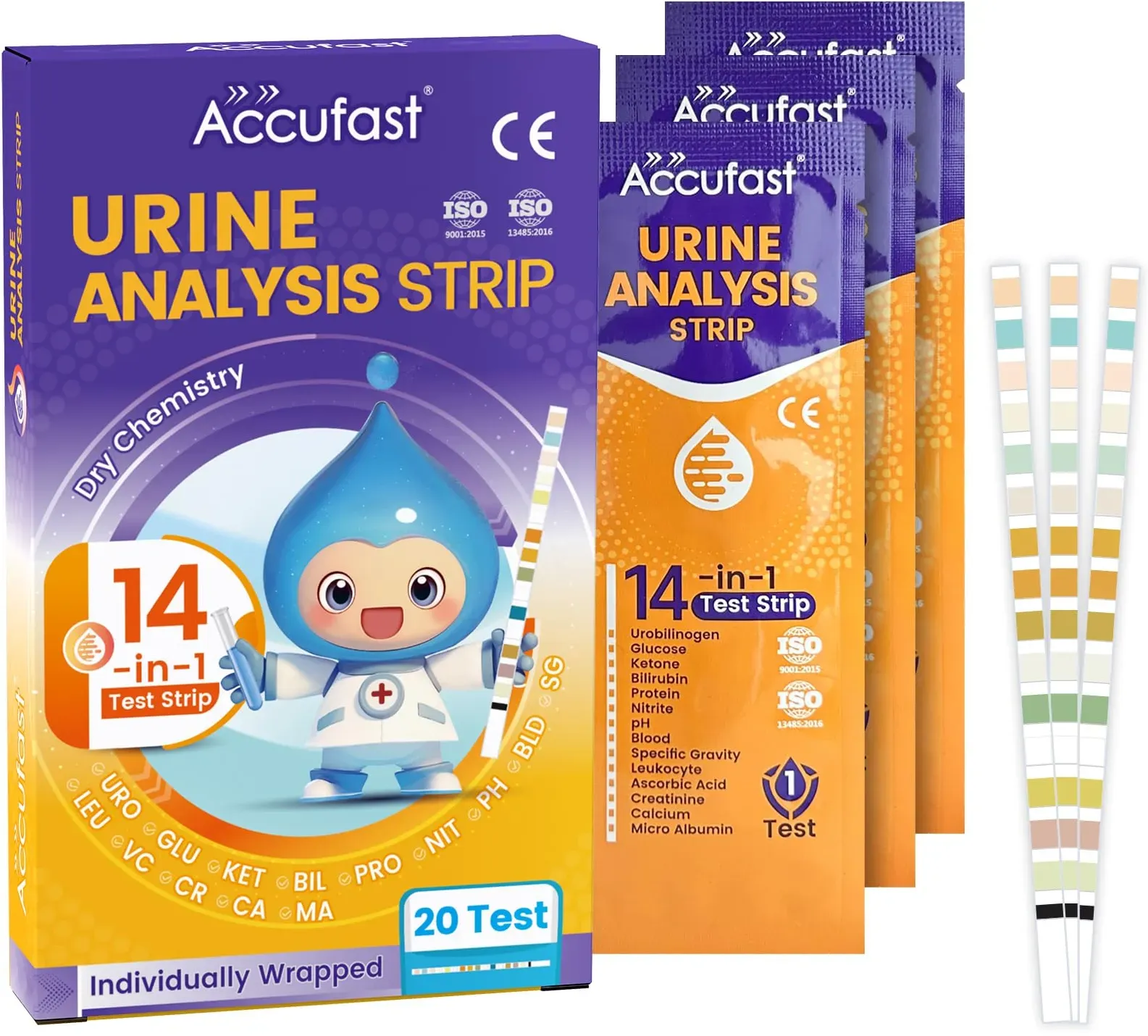 Kategorie: Schwangerschaftstests - Accufast - 14-in-1-Urintest für umfassende Gesundheitsuntersuchungen - Deckt 14 wichtige Gesundheitsmarker ab: Urobilinogen, Glukose, Keton, Bilirubin, Protein, Nitrit, pH-Wert, Blut, spezifisches Gewicht, Leukozyten, Ascorbinsäure, Kreatinin, Kalzium und Mikroalbumin. Schneller Test auf Harnwegsinfekte und andere gesundheitliche Probleme mit bewährter Genauigkeit. Einzeln verpackt & separate Farbtabelle - Optimiert für mehr Hygiene und Komfort enthält 20 Urinteststreifen zum Einmalgebrauch, einzeln versiegelt in einem wasserdichten Folienbeutel. Enthält eine separate Farbvergleichstabelle für genaue, leicht ablesbare Ergebnisse. Einfach eintauchen, vergleichen und Ihre Gesundheit zuverlässig überwachen. Ergebnisse in nur 60 Sekunden - Testen Sie Ihren Urin auf 14 wichtige Gesundheitsparameter, um mögliche Harnwegsinfektionen und andere potenzielle Gesundheitsprobleme zu erkennen. Die Ergebnisse liegen in nur 60 Sekunden vor. So können Sie erkennen, ob weitere Maßnahmen erforderlich sind. Keine Termine oder Laborbesuche erforderlich. Entwickelt für Heimanwender und Profis gleichermaßen. Laborgenauigkeit & zertifizierte Qualität - Verfügt über fortschrittliche Testpads, die Störungen durch Ascorbinsäure (Vitamin C) widerstehen und so stabilere und präzisere Messwerte gewährleisten. Hergestellt in einer zertifizierten Einrichtung unter strengen Qualitätskontrollstandards. Diese Harnwegsinfektions-Teststreifen liefern zuverlässige Ergebnisse ... Diese HIXO Ketone Teststreifen bieten eine schnelle und präzise Messung des Ketose-Status, perfekt für Keto-Diäten. ![]() ![]() HIXO 100x Ketone Teststreifen Keto Test für Ketose Status im Urin Schnelle & präzise Messung für Keto Diät, Low Carb & ketogene Ernährung
