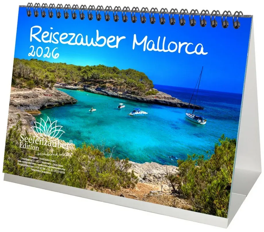 lieferbar-in 4-5 Werktagen bei dirSeelenzauber Tischkalender Reisezauber Mallorca DIN A5 Tischkalender für 2026 Palma Urlaub weiß