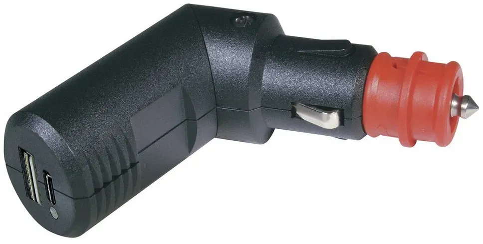 lieferbar-in 2-3 Werktagen bei dirProCar Kfz-Relais ProCar Winkelbarer Doppel USB-C /A Ladestecker 12 V/5V Belastbarkeit S rot|schwarz
