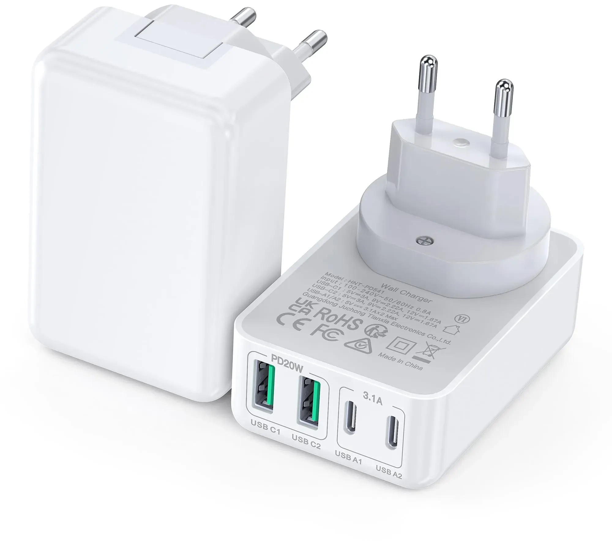 Kategorie: Handy Ladegeräte - ssouwao - 120W 6-Ports Schnelle USB-Ladestation: Die USB-c-ladestation hat eine gesamtausgangsleistung von bis zu 120W mit 3 USB-A QC3.0-Ports und 3 USB-C PD3.0-Ports. 65W USB-c-ports, wenn sie unabhängig verwendet werden, bieten volle geschwindigkeit PD-laden für laptops. Die mehrfach-USB-ladestation unterstützt das schnelle aufladen von 6 geräten gleichzeitig und spart dabei maximalen platz Universell Kompatibel: Unser USB netzteil ist mit fast allen geräten kompatibel, die über USB-C und USB-A geladen werden können. 120W Ladestation für mehrere geräte kompatibel mit MacBook Pro 14''/ MacBook Pro 13''/ MacBook Pro/ MacBook Air / iPhone 16/15/14/ 14PLUS/ 14PRO/ 14PRO MAX/ 13/ 13 Pro/ 13 Pro Max/ 12/ 12 Pro Max/ 12 Pro/ 12/ XR/ XS/ X; iPad Pro, iPad Air; Samsung Galaxy S20 S21/ Note 20/ 21, google pixel, kamera, e-reader und andere kleine haushaltsgeräte Sicheres Laden: Diese nachttisch-ladestation mit feuerfestem PC+ABS-material, gebaut mit premium navitas galliumnitrid (GaN) chipsätzen arbeiten effizienter und erzeugen weniger wärme. USB-ladeblock eingebauter überladeschutz, überhitzungsschutz, kurzschlussschutz, überstromschutz, überspannungsschutz; rundum sicheres schutzsystem ist mehr, um Ihre geräte vollständig zu schützen Perfekt für Reisen und Tragbar: Tragbare USB ladestation kompakte körper leicht genommen, wo immer sie gehen. Weltweite 100-240 volt AC eingangsspannung, kompaktes und leichtes design machen die reiseladestation ... Ein 65W Schnellladegerät mit GaN-Technologie, zwei USB-C und einem USB-A Port in kompaktem Design, umweltfreundlich verpackt. ![]() ![]() Aqiila USB-C Ladegerät 65W | Schnellladegerät GaN Technologie, PD, Quick Charge, 2X USB-C, 1x USB-A, Netzteil Ladestecker, kompaktes Design, 100-240V, plastikfrei verpackt | Chargebird W3 Weiß