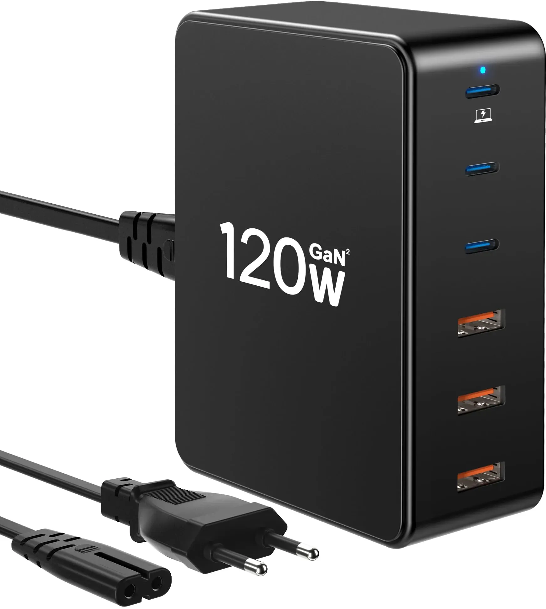Kategorie: Netzteile & Ladegeräte - Green Cell - GTIN:5907813969102 - GC PowerGaN 65-W-Ladegerät in GaN-Technologie - passt in Ihre Tasche und lädt sofort bis zu 3 Geräte gleichzeitig Bis zu 40 % kleiner und leichter als Standard-Ladegeräte - hohe Leistung und kompakte Größe sparen sowohl Ladezeit als auch Platz Ausgestattet mit 3 schnellen USB-Anschlüssen: 2x USB-C Power Delivery und 1x USB-A Ultra Charge zum Aufladen von Laptop, Telefon, drahtlosen Kopfhörern, Powerbank und mehr Unterstützt die gängigsten Schnellladeprotokolle, darunter: Power Delivery 3.0 und Ultra Charge (kompatibel mit Quick Charge 3.0, Samsung AFC, Huawei FCP/SCP) Intelligentes Laden - Die Stromverteilung ermöglicht es Ihnen, angeschlossene Geräte optimal zu laden. Je nachdem, welchen Anschluss Sie verwenden, passt das Netzladegerät die Ladeleistung an, um Ihnen die schnellste und günstigste Leistung zu bieten. Ladegerät funktioniert nicht mit Lenovo Yoga-Geräten - 29,95 Euro bei Amazon Marketplace CE - gefunden von billiger.de Dieses 120W GaN 6-Port USB-Ladegerät ist eine leistungsstarke Schnellladestation für mehrere Geräte, einschließlich Laptops. ![]() ![]() USB C Ladegerät, ssouwao 120W GaN 6-Port USB Ladegerät, USB C Netzteil mit 3 USB-C und 3 USB-A, Schnellladestation Mehrfach Ladestecker, Laptop-Ladegerät USB Charger für MacBook, iPhone, iPad, Galaxy