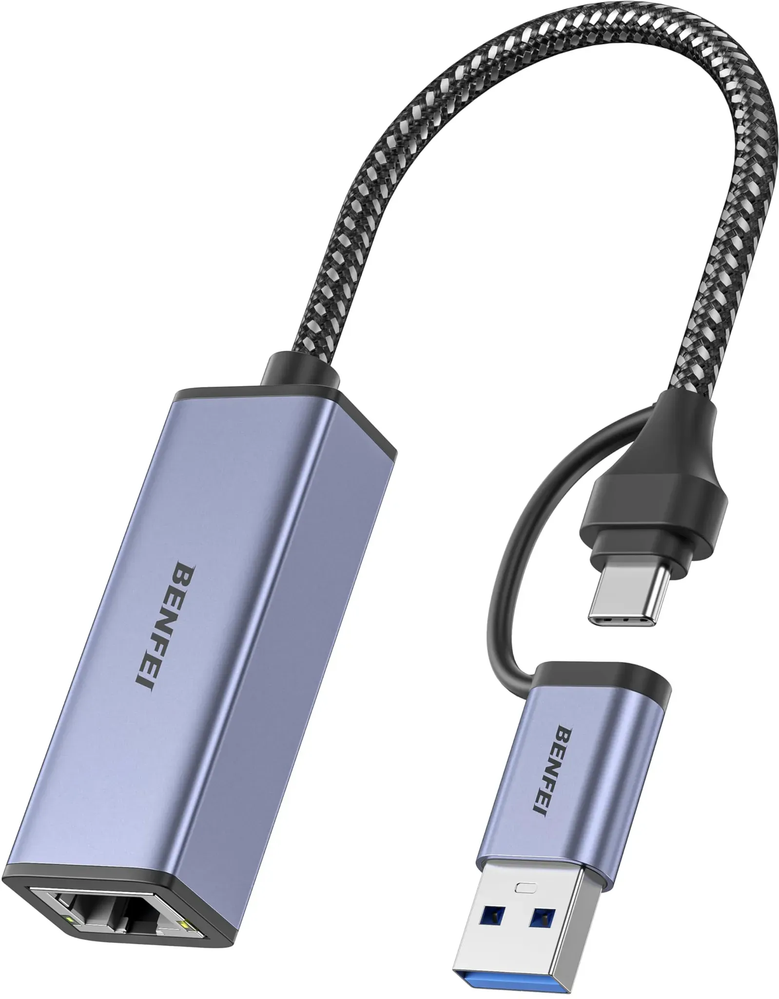 Kategorie: USB-Kabel & Adapter - loydia - USB und Typ-C Ethernet Adapter Dieser USB-C-zu-RJ45-Ethernet-Adapter wurde speziell für USB-C-Geräte ohne RJ45-Anschluss oder mit beschädigtem RJ45-Anschluss entwickelt und bietet eine schnelle und stabile Verbindung zwischen Ethernet-Kabel und USB-C-Geräten ohne Ethernet-Anschluss oder mit beschädigten Ethernet-Anschlüssen. Extra USB C Adapter Der aufgerüstete Ethernet-Adapter wird mit einem USB-C-Adapter geliefert, der den Anschluss an Ethernet ermöglicht, egal ob der Computer nur eine USB-C-Schnittstelle oder eine USB-A-Schnittstelle hat. USB 3.0 zu Ethernet Adapter Der USB Ethernet Adapter mit USB 3.0 zu RJ45 Gigabit Ethernet Port kann bis zu 1000Mbps stabile Verbindungsgeschwindigkeiten. Gigabit-Ethernet-Anschluss bietet schnelle Netzwerkgeschwindigkeit für Online-Gaming, Surfen im Internet, Online-HD-Video-Streaming, Upload und Download, rückwärtskompatibel mit 100Mbps/10Mbps-Netzwerken. Plug to Play & Safe Keine Notwendigkeit, irgendwelche Treiber zu installieren, bietet Zugang zu schnellen Netzwerkgeschwindigkeiten 1000Mbps, verabschieden Sie sich von den Lade- und Latenzzeiten, einfach Plug and Play, und macht es möglich, dass Computer ohne einen Ethernet-Anschluss an das Netzwerk anschließen. Der eingebaute überspannungsschutz schützt Ihre Geräte und Daten und verhindert Datenunterbrechungen während der übertragung. USB C zu LAN Adapter Klein und tragbar, hochwertiger eingebauter Chip und Aluminiumgehäuse-Design, ... Dieser BENFEI Adapter ist eine preiswerte Option für eine stabile Gigabit-LAN-Verbindung und ist mit vielen Betriebssystemen kompatibel. ![]() ![]() BENFEI USB-C auf Ethernet Adapter, USB 3.0 auf RJ45 Gigabit LAN (1000Mbps) Netzwerkadapter , kompatibel mit MacBook/Pro/Air, Surface Pro, Windows 11/10/8/7, Mac OS