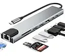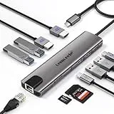 Kategorie: Dockingstations - hemlosk - Erweiterte Konnektivität in Einem Hub Dieser 8-in-1-USB-C-Adapter dockingstation bietet eine Komplettlösung mit USB 3.0- und 2.0-Anschlüssen, einem SD/TF-Kartensteckplatz, 4K-HDMI-Ausgang, RJ45-Ethernet und 100-W-PD-Ladefunktion. Kompakt und leicht, benötigt er keine Treiber oder Konfiguration. Diese USB C docking station ist perfekt für mehr Produktivität zu Hause und unterwegs HDMI ULTRA HD 4K bei 60 Hz Schließen Sie Ihren Laptop oder Ihr Smartphone über den HDMI-Anschluss des docking station USB C an einen Monitor, Fernseher oder Projektor mit Auflösungen von bis zu 3840 x 2160 bei 60 Hz an. Dieser USB C hub HDMI eignet sich perfekt für Präsentationen, Videokonferenzen, Vorlesungen und Unterhaltung. Hinweis: Bitte stellen Sie sicher, dass der USB-C-Anschluss Ihres Geräts Videoausgabe unterstützt Highspeed-Datenübertragung und Kartenleser Der integrierte SD- und microSD-Kartenleser dieses USB C multiport adapter erleichtert die Verwaltung Ihrer Mediendateien. Mit USB-A- und USB-C-Anschlüssen, die Geschwindigkeiten von bis zu 5 Gbit/s unterstützen, eignet sich dieser Hub perfekt für den Anschluss von Festplatte, Tastatur, Maus oder Flash-Laufwerk. Sie können Daten gleichzeitig zwischen mehreren Geräten übertragen Stabiles Ethernet und 100-W-PD-Schnellladung Mit dem 100-Mbit/s-RJ-45-Anschluss dieses USB C hub Ethernet genießen Sie eine stabile, schnelle kabelgebundene Internetverbindung, die bis zu 10-mal schneller ist als WLAN. Der ... Dieser 6-in-1 Hub von yeecka bietet neben Gigabit-LAN auch 4K HDMI, PD 100W und drei USB 3.0 Ports, was ihn zu einer vielseitigen Erweiterung macht. ![]() ![]() yeecka USB C Hub Ethernet 6 in 1, 4K HDMI, LAN RJ45 1000Mbp,PD100W, 3*USB A 3.0 5Gbps Docking Station USBC Multiport Adapter für iPhone 16 Serie, MacBook Pro/Air,iPad Pro/Air,Galaxy S24,Steam Deck usw.