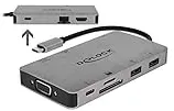Gewöhnlich versandfertig in 9 bis 10 TagenDelock USB C HUB/Thunderbolt 3 Adapter / 9 in 1 Dockingstation mit HDMI 4K / VGA/USB 3.1 mit PD 3.0 Ladefunktion/SD/Micro SD-Kartenleser / RJ45 GigaBit LAN, 87735