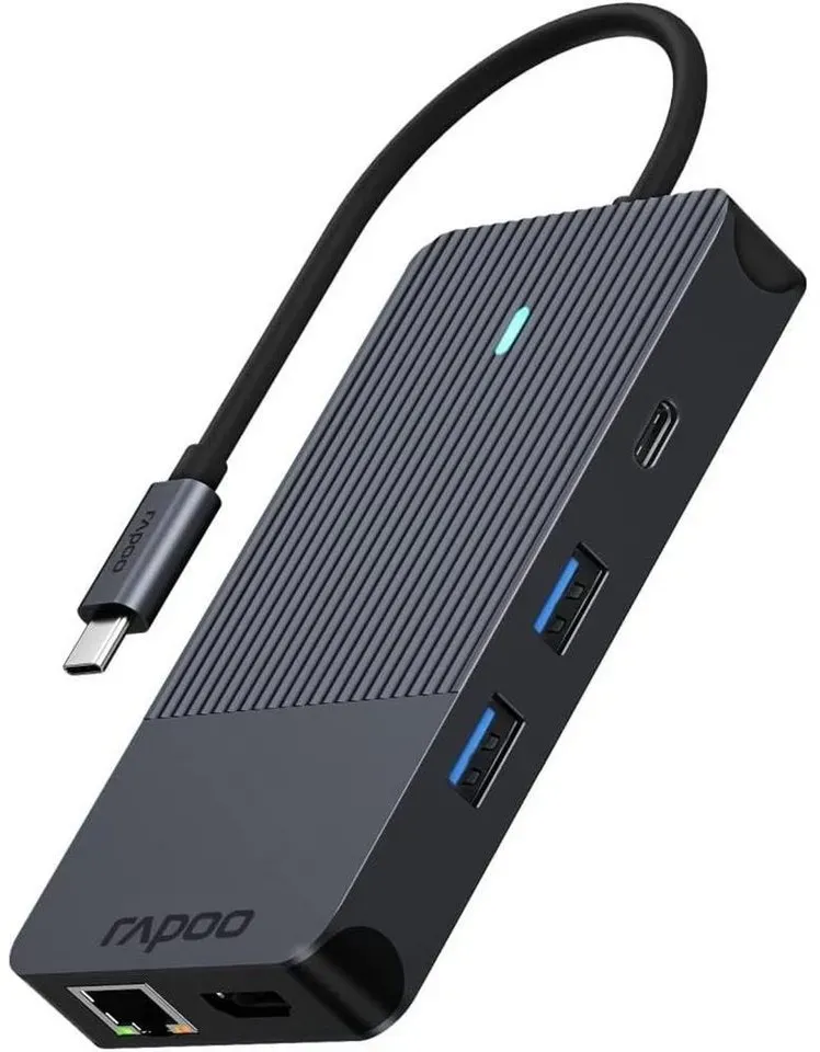 lieferbar-in 3-4 Werktagen bei dirRapoo UCM-2005 USB-C Multiport Adapter 10-in-1 USB-Adapter HDMI, USB-C, USB 3.0 Typ A, RJ45 LAN, 3,5-mm-Klinke, SD/ MicroSD zu USB-C, 100W Power Delievery grau
