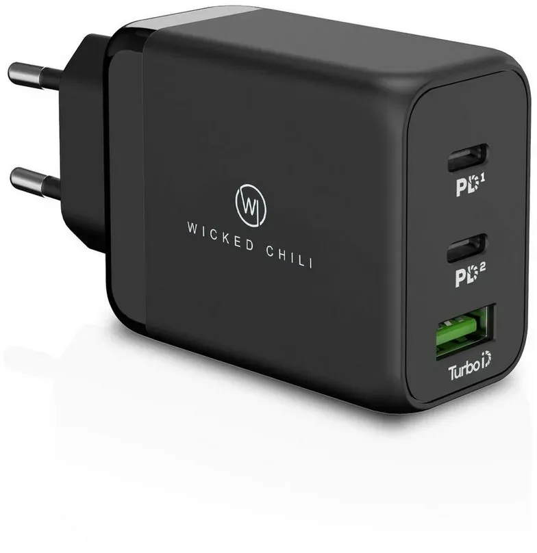 lieferbar-in 2-3 Werktagen bei dirWicked Chili Wicked Chili 3in1 USB Schnellladegerät QC 4.0+ 65W 2x USB-C 1x USB-A, Steckernetzteil (Mit Quick Charge 4.0+ / PD 3.0 PPS - 3in1 Universal GaN USB-C Netzteil) schwarz
