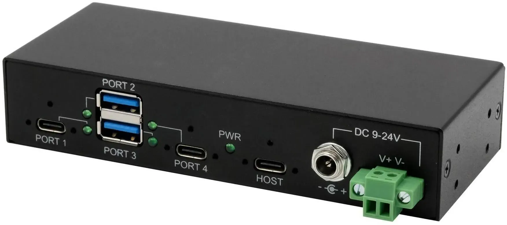 Kategorie: USB-Hubs - Exsys - GTIN:4718359112959 - Der robuste, industrietaugliche EX-11295HMS ist ein USB 3.2 Gen 2 Metall HUB für bis zu vier Endgeräte, der an die Wand oder auf eine Trägerschiene installiert werden kann. Er ist mit 2 USB-A Ports und 2 USB-C Ports für Endgeräte sowie 1 USB-C Port für den Anschluss an den PC ausgestattet und gewährleistet eine sichere Datenübertragung und exzellente Performance von bis zu 10 Gbit/s (SuperSpeed USB 10 Gbps). über die externe Stromversorgung können an jedem Port bis zu 2,5 A zur Verfügung gestellt werden. Dies ermöglicht ein problemloses Aufladen von iPhone, iPad, Smartphone und Tablet. Die Stromversorgung erfolgt über das mitgelieferte Steckernetzteil oder ein optional erhältliches DIN-Rail Netzteil (Self-Power). Bus-Power wird nicht unterstützt. USB 3.2 Gen 2 Metall HUB mit jeweils zwei C- und A-Downstream Ports 15 kV ESD überspannungsschutz für jeden Ausgang Stromversorgung +9 V bis +24 V DC über Terminal Block oder DC-Buchse Redundante Stromversorgung bei Verwendung von TB und DC-Buchse Bis zu 2,5 A pro Port, Ausgangsleistung total max. 27 W (5,4 A@5 V) Automatische Erkennung der Datentransfer-Rate für die angeschlossenen Peripheriegeräte Inklusive Wandmontagebügel und DIN-Rail Kit Kompaktes Industrie-Design Robustes Metallgehäuse LED-Anzeigen für Stromversorgung und Verbindungsstatus Chip-Set: VIA VL822 Lieferumfang: EX-11295HMS, USB 3.2 Gen 2 Kabel verschraubbar (1,0 Meter), DIN-Rail Kit, Wandmontage Kit, Handbuch. - ... Ein sehr leistungsstarker 16-Port Industrie-Hub mit 397.83 Euro, der für anspruchsvolle industrielle Anwendungen und hohe Zuverlässigkeit konzipiert ist. ![]() ![]() StarTech COM 16-Port Industrie USB 3.0 Hub mit Netzteil 5Gbps Verteiler/Mehrfachstecker fur DIN/Rack (USB-B, 16 Ports), Dockingstation + USB Hub, Schwarz