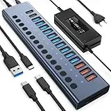 Kategorie: USB-Hubs - RSHTECH - GTIN:4711100073493 - Professionelle Business Grade 16 USB 3.0 Ports - USB 3.0 hub mit 100W netzteil ist vergleichbar mit dem Gewöhnliche herkömmlichen USB 3.0 Ladegerät! Während der Datenübertragung kann der Hub auch Ihr USB-Gerät aufladen. (Gewöhnliche Charging-Speed) Der USB verteiler erweitert außerdem den einzelnen USB 3.0-Anschluss des Computers auf 16 USB Port, sodass Sie mehrere USB-Geräte gleichzeitig anschließen, wie USB-Video-Adapter, USB Ventilator, USB Lampe, DJ Studio, MP3-Player usw. anschließen 5 Gbps Speed + 100W (12V / 8.3A) Netzteil - RSHTECH USB Hub mit Strom unterstützt die datenübertragungsgeschwindigkeit von bis zu 5 Gbps und 10x schneller als USB 2.0-Anschlüsse. USB hub 3.0 aktiver ist mit einem separaten 100W (12V / 8.3A) netzteil mit dem mehrere USB-Geräte gleichzeitig betrieben werden können. Verwenden Sie insbesondere für stromhungrige USB-Geräte wie externe Festplatten mit hoher Kapazität das Stromadapter, um eine stabile Datenübertragung zu gewährleisten Aluminiumgehäuse + Unabhängiger Schalter + LED Kontrollleuchte - Der USB hub mit netzteil besteht aus Metall. Im Gegensatz zu gewöhnlichem Kunststoffhat ein hochglänzendes Design an den Kanten, das sowohl stark, langlebig und schön ist. 16 ports USB 3.0 splitter haben die separate schalter und blau LED Kontrollleuchte. Und die blaue LED Kontrollleuchte flackert, wenn Daten übertragen werden. Wenn die Stromversorgung wiederhergestellt ist, behalten die Ports den ... Ein High-End 17-Port-Hub mit 96W Netzteil, Schnellladeports und Kartenleser, der maximale Konnektivität und Ladeleistung bietet. ![]() ![]() Powered USB-Hub, VANGREE 17-Port 96W USB 3.0 Hub (10 USB 3.2 Ports+3 QC24W Schnellladeports+2 USB-C 3.2 Ports+SD/TF Kartenleser), individuelle EIN-/Ausschalter, 12V/8A Netzteil für Laptop, PC