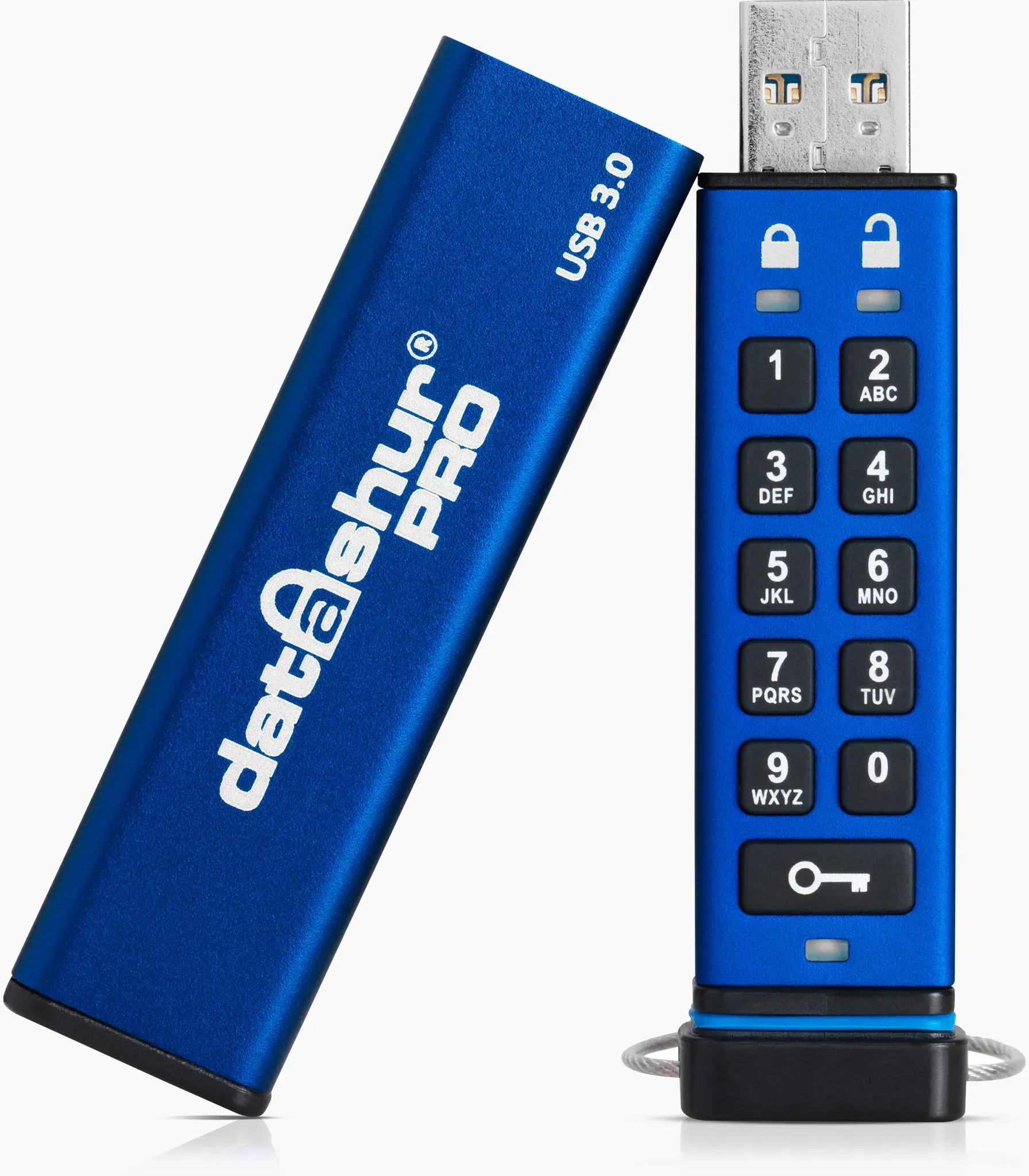 Speicherkarten USB-Stick USB-Flash-Laufwerke - EAN:0023942494324 - Die integrierte AES 256-Bit-Hardware-Verschlüsselung des Secure Keypad USB-Sticks sichert alle abgespeicherte Daten nahtlos, zuverlässig und in Echtzeit vor unbefugtem Zugriff. Dafür ist weder eine Software-Installation notwendig noch sind Administratoren-Rechte erforderlich. Die eingebaute Tastatur dient der Zahlencodeeingabe - erst nach Eingabe des korrekten Codes ist ein Datenzugriff möglich. Dabei speichert der USB-Stick die Passwörter nicht auf dem Computer oder dem flüchtigen Speicher des Systems und ist so deutlich sicherer als eine Softwareverschlüsselung. Das Kennwort kann dabei eine Länge von bis zu 12 Ziffern aufweisen. Nach 20 fehlgeschlagenen Passworteingaben wird der USB-Stick samt der darauf befindlichen Daten gesperrt und muss vor der weiteren Verwendung zuerst formatiert werden. Somit sind alle wichtigen Daten auch beim Verlust oder Diebstahl des USB-Sticks sicher und geschützt. Das Gehäuse aus Aluminum und Kunststoff enthält eine LED-Anzeige, die Informationen über den aktuellen Status der Verschlüsselung gibt. Zusätzlich zur Verwendung an Computern und Notebooks ist auch der Anschluss an Fernsehgeräte mit PVR-Funktion (Personal Video Recorder) möglich - eine Funktion, die mit regulär verschlüsselten Datenträgern in der Regel nicht möglich ist. Dank der Abwärtskompatibilität kann der USB-Stick auch an älteren USB-Anschlüssen genutzt werden. Im Lieferumfang ist eine USB Typ-C auf Typ-C ... Der Istorage datAshur Pro ist ein hochpreisiger, aber extrem sicherer USB-Stick mit Hardware-Verschlüsselung und PIN-Schutz. ![]() ![]() Istorage datAshur Pro 128 GB