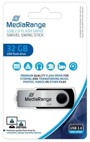 Zustand: Neu - Top Brands Tech Computer Accessories - Verbatim - 49064 - EAN: 0023942490647 - PRAKTISCH & LEICHT: Der USB Stick überzeugt mit seinem praktischen Schiebemechanismus, der den USB-Anschluss optimal schützt - das Leichtgewicht von 8,6g machen ihn zum idealen Begleiter. VIELSEITIGE EINSATZGEBIETE: Der PinStripe USB Stick in Streifenoptik eignet sich zum Beispiel optimal als Speichererweiterung für Netbooks, Laptops, Ultrabooks und für Autoradios. SCHNELLE DATENÜBERTRAGUNG: Der Stick überzeugt mit einer Lesegeschwindigkeit von bis zu 12 MB/s & einer Schreibgeschwindigkeit von bis zu 5 MB/s - größere Dateien sind für ihn also kein Problem. PRODUKTDETAILS: Der USB Stick ist mit Windows 7 (oder höher) und Mac OS X 10.4 (oder höher) kompatibel - außerdem lässt der Speicherstick sich mit USB 3.2 Gen 1 Anschlüssen verbinden. Verbatim: Mit unserer jahrelangen Erfahrung stehen wir für genaue & fehlerfreie Datenspeicherung - Unsere Stärken in den Bereichen F&E und Qualitätssicherung ren erstklassige Produkte! - 34 Händler im amazon.de Marketplace ![]() ![]() MediaRange Flexi-Drive 32GB schwarz/silber