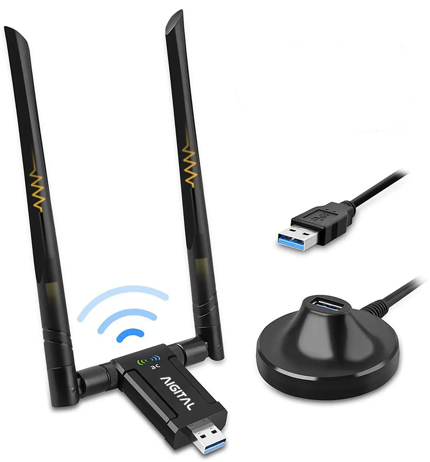 Kategorie: WLAN-Sticks - mapille - GTIN:5061084660066 - Ultraschnelle Konnektivität: Dieser USB-WLAN-Adapter bietet Geschwindigkeiten von bis zu 5,4 Gbit/s (2402 Mbit/s bei 6 GHz, 2402 Mbit/s bei 5 GHz oder 574 Mbit/s bei 2,4 GHz). Genießen Sie nahtloses Online-Gaming und hochauflösendes Video-Streaming mit unserem AX5400 Tri-Band USB 3.0 WLAN-Adapter Robuste übertragung: Das Design mit 2 Hochleistungsantennen sorgt für stärkere übertragung und Empfang. Unser WLAN-6E-Adapter sorgt für eine zuverlässige WLAN-Verbindung in verschiedenen Umgebungen und ermöglicht unterbrechungsfreies digitales Engagement WPA3-Verschlüsselung: Erweiterte Sicherheit mit WPA3-Verschlüsselung, vergleichbar mit Verschlüsselungsstandards auf Bankniveau, schützt Ihre Verbindung vor unbefugten Zugriffen. Diese Funktion stärkt Ihr Netzwerk gegen verschiedene Arten von Angriffen, einschließlich Brute-Force- und Offline-Wörterbuchangriffen Routerkompatibilität: Unsere AX5400-Serie ist mit allen WLAN-Routern kompatibel, die WPA3/WPA2/WPA/WEP unterstützen. Keine Störungen durch häufig störende Geräte. Verbessern Sie Ihre Konnektivität und Ihr drahtloses Interneterlebnis mit der Unterstützung unseres Tri-Band-WLAN-Adapters Benutzerfreundliche Einrichtung: Integrierter vorinstallierter Treiber ersetzt den Aufwand eines physischen CD-Treibers, einfache Installation. Kompatibel mit Windows 11/10. Hinweis: Für die Verbindung zum 6-GHz-WLAN-Band ist Windows 11 erforderlich; Windows 10 unterstützt nur die 5-GHz- ... Dieser Stick bietet eine gute Balance aus Leistung und Preis mit Dualband-Unterstützung und externen Antennen für verbesserte Reichweite. ![]() ![]() Aigital WLAN Adapter 1200Mbit/s, WLAN USB Stick DualBand 867Mbit/s (5GHz), 300Mbit/s (2,4GHz) WLAN Empfänger mit 2*5dBi Antenne und USB 3.0-Dockingstation mit 65cm kable für PC Desktop Laptop Windows/Mac OS