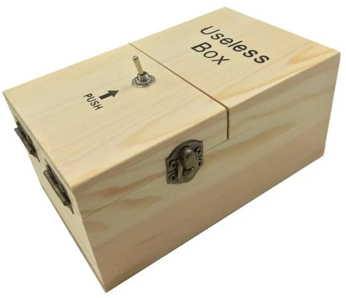 Useless box META PreisvergleichMit dem Meta-Preisvergleich suchen Sie gleichzeitig bei den großen Preisvergleich Portalen!Jetzt live Suche nach useless box starten! Useless box KaufberatungEine Useless Box ist ein kleines Gerät, dessen einziger Zweck darin besteht, sich selbst auszuschalten, nachdem man einen Schalter betätigt hat - also eine Art humorvolles, sinnloses Gadget[4][9]. Worauf Sie achten sollten: