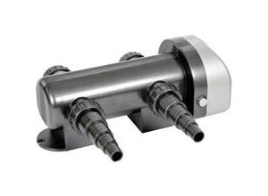 Kategorie: Teichfilter - OASE - GTIN:4010052881089 - zur Beseitigung von Schwebealgen|reduziert schädliche Keime und Bakterien|optische Funktionskontrolle des UVC-Leuchtmittels|hochwertige Verarbeitung mit schlagfestem Kunststoffgehäuse|einfache Montage dank umfangreichem Anschlusszubehör; Trübe Aussichten im Teich? Keineswegs. Denn das OASE UVC-Vorklärgerät 'Vitronic 11 W' sorgt dafür, dass auch hartnäckiger Befall des Teichwassers mit Schwebealgen wieder verschwindet - und das selbst während der gefürchteten Frühjahrs-Algenblüte im April. Die Kraft der eingebauten UVC-Lampe zerstört die Zellstruktur der Schwebealgen und verhindert so wirksam deren Wachstum. Durch die optische Funktionskontrolle hast du die Funktion der UVC-Lampe stets im Blick. Schließe den Vorklärer einfach zwischen Teichpumpe und Teichfilter an. Dank der drei Eingänge am Gehäuse kann 'Vitronic 11 W' mit verschiedenen OASE Filtermodellen sowie anderen marktüblichen Teichfiltern kombiniert werden. - 89,99 Euro bei toom.de - gefunden von billiger.de Dieser UVC-Klärer von Hozelock ist eine bewährte Lösung für klares Teichwasser. ![]() 374264 / Conrad Electronic DE Hozelock 1559C1240 Vorton 11 UVC-Klärer UVC-Gerät mit UVC-Klärgerät