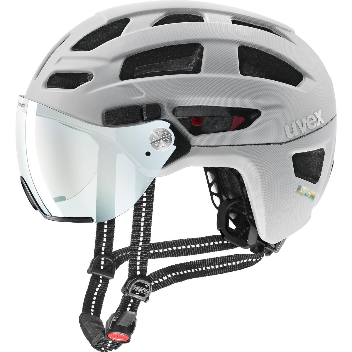 5 Händlerangebote bei billiger.de - Kategorie: Fahrradhelme - Uvex - Fahrradhelm Perfekt sehen, perfekt aussehen – das ist die stylische Antwort auf herkömmliche Helm-Brillen-Kombinationen. Ein cooler Look mit leicht verspiegeltem Visier, hinter dem du auf alles vorbereitet bist. Als erster Inmould-Helm mit Allwetter-Visier in litemirror silver (Schutzstufe 1) schützt der uvex finale visor deine Augen im Straßenverkehr optimal vor Sonne und Wind. Du kannst ihn bequem über der Korrekturbrille tragen und bei Bedarf mit höherem Sonnenschutz aufrüsten. Die lässige Form mit den heruntergezogenen Seitenteilen und mehr Fläche am Hinterkopf bietet dir zusätzliche Sicherheit und erinnert an angesagte Mountainbike-Helme. über das uvex anatomic 3D IAS system kannst du deinen Helm in der Weite optimal anpassen. Zwanzig Belüftungsöffnungen und innen verlaufende Ventilationskanäle sorgen für optimale Luftzirkulation und einen kühlen Kopf im dichten Straßenverkehr. Besonders sicher: Das Plug-In LED und die reflektierenden Straps und Logos für bessere Sichtbarkeit in der Dämmerung. Uvex finale visor, Unisex, 52-57 Uvex finale visor. Geschlecht: Unisex, Größe (spezifisch): 52-57 - GTIN:4043197384788 Ein Damenmodell in Jade-Black matt zu einem fairen Preis, das speziell auf die Bedürfnisse von Frauen zugeschnitten sein könnte. ![]() ![]() Uvex Finale Visor 52-57 cm Damen jade-black matt 2021
