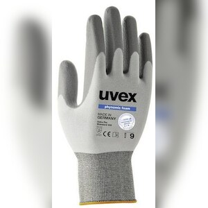 Kategorie: Arbeits- & Schutzkleidung - Uvex - GTIN:4048612124253 - MADE IN GERMANY // Die Fertigung in Deutschland sichert eine nachhaltige, ressourcenschonende Produktion und kurze Wege vom Hersteller zum Anwender. CUT LEVEL F // Durch die Integration von Stahlfasern in das Material erreicht der Handschuh den höchsten Schnittschutz der Klasse F. Dies macht den Handschuh besonders geeignet für Arbeitsbedingungen, in denen das Verletzungsrisiko durch extrem scharfe Objekte hoch ist. XTRA GRIP TECHNOLOGIE // Die uvex Aqua-Polymer 'Xtra Grip' Schaumbeschichtung bremst öl und Nässe zuverlässig aus. Der einzigartige mehrlagige Aufbau der Nitrilbeschichtung sorgt für effektive Griffsicherheit bei gleichzeitig hoher Flexibilität sowie hervorragendem Tastgefühl und Tragekomfort. Der robuste und widerstandsfähige Aufbau sichert dabei eine besondere Langlebigkeit. DERMATOLOGISCH BESTäTIGT // Gesundheitsschutz und Hautverträglichkeit wurden durch das Institut proDERM in einem aufwendigen Verfahren mittels einer Anwenderstudie geprüft und dermatologisch bestätigt. EINSATZBEREICHE // Der uvex Bamboo TwinFlex D xg Schutzhandschuh kann seine Höchstleistung während der Montage und das Handling von sehr scharfkantigen Teilen, Metall- und Glasverarbeitung, Kontrollarbeiten, Lebensmittelverarbeitung, Sortierarbeiten, Verpackungsarbeiten, Arbeiten an Industriebildschirmen, Tablets und Mobiltelefone und Wartungs- und Instandhaltungsarbeiten in feuchten & öligen Arbeitsbereichen entfalten. Er ... Ein einzelnes Paar des Uvex phynomic F XG in Größe 9, das eine gute Balance zwischen Preis und Leistung bietet. ![]() uvex phynomic F XG 6006809 Schnittschutzhandschuh Größe (Handschuhe): 9 EN 388, EN 511 1 Paar