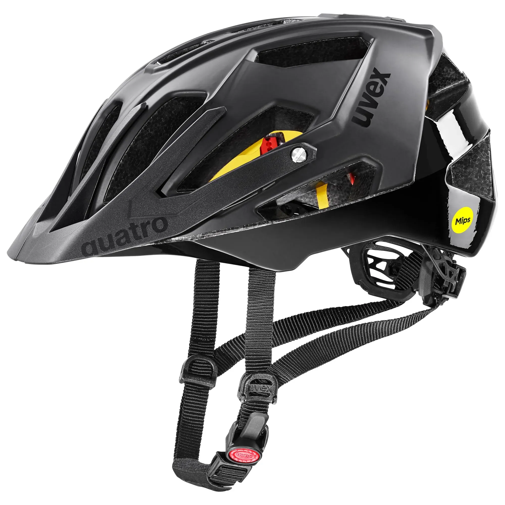 3 Händlerangebote bei billiger.de - Kategorie: Fahrradhelme - Uvex - Das Rundum-Sorglos-Paket für Mountainbiker So sicher kann Mountainbiken sein. Der uvex quatro cc MIPS liefert das volle Programm und schützt im Falle eines Sturzes auch vor Rotationskräften. Verblockte Trails, Wurzelpassagen und Schlamm €“ Mountainbiken erfordert höchste Konzentration, damit die nächste Spitzkehre nicht zur Spaßbremse wird. Wie gut, wenn man sich jederzeit auf seine Ausrüstung verlassen kann, so wie auf den uvex quatro cc MIPS. Der gut belüftete Mountainbike-Helm mit 17 Ventilationskanälen und großem, verstellbarem Visier schützt dank integriertem Multi Impact Protection System (MIPS) auch vor Rotationskräften. Ein Sicherheitsplus, von dem immer mehr Biker überzeugt sind. Besonders praktisch: Mit optionalem Adapter kann eine Helmkamera angebracht und so das eigene Bike-Abenteuer dokumentiert werden. Uvex quatro cc MIPS, Integralhelm, Hartschalenbau, Helmvisier Uvex quatro cc MIPS. Helmtyp: Integralhelm, Bauart: Hartschalenbau, Helmvisier quatro cc MIPS, 52-57, all schwarz - GTIN:4043197336176 Dieses Angebot bietet den Helm in All Black für die Größe 52-57 cm mit waschbarer Innenausstattung. ![]() ![]() uvex Quatro cc MIPS - sicherer MTB-Helm für Damen und Herren - MIPS-Sysytem - waschbare Innenausstattung - All Black - 52-57 cm