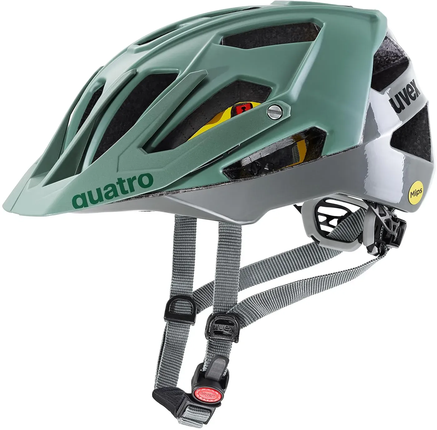 1 Händlerangebote bei billiger.de - Kategorie: Fahrradhelme - Uvex - Wie gut, wenn man sich jederzeit auf seine Ausrüstung verlassen kann. Der Fahrradhelm uvex Quatro cc MIPS, so sicher kann Mountainbiken sein. Der Helm liefert das volle Programm und schützt im Falle eines Sturzes auch vor Rotationskräften. Der gut belüftete uvex Quatro cc MIPS Fahrradhelm mit 17 Ventilationskanälen und verstellbarem Visier. Weitere praktische Details sind das FAS Gurtbandsystem, für eine stufenlose Anpassung sowie ein Fliegennetz im vorderen Helmbereich. - GTIN:4043197368122 Dieses Angebot bietet den Helm in Moss Rhino mit waschbarer Innenausstattung, ideal für Mountainbiker. ![]() ![]() uvex Quatro cc MIPS - sicherer MTB-Helm für Damen und Herren - MIPS-Sysytem - waschbare Innenausstattung - Moss Rhino - 52-57 cm