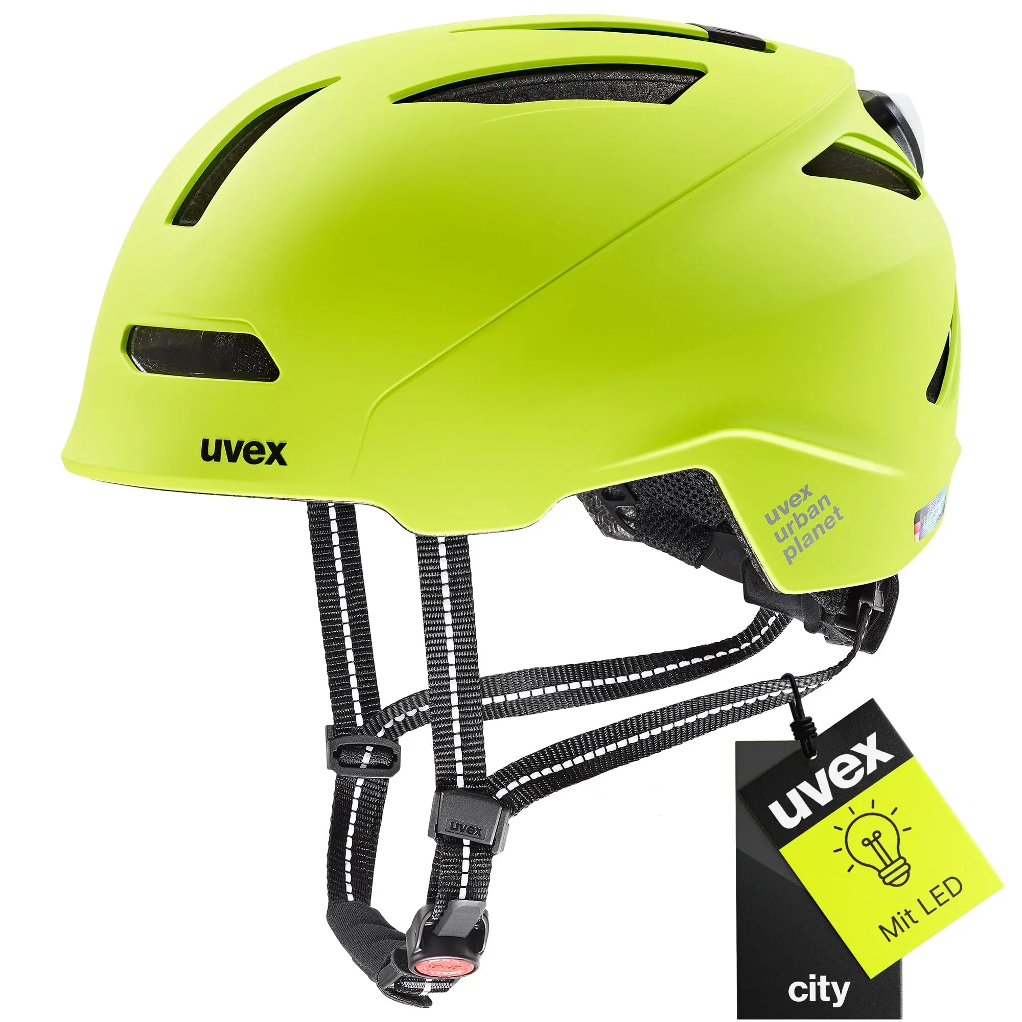 2 Händlerangebote bei billiger.de - Kategorie: Fahrradhelme - Uvex - Ride, protect, sustain and shine. Unser innovativer Cityhelm mit Hardshell Technologie aus recycelten, biobasierten Materialien inklusive Plug-in LED. Für alle, die auf dem Bike mehr für die Umwelt tun möchten: Der uvex urban planet ist von Anfang an nachhaltig gedacht und völlig neu konzipiert. Der stylische Citylook mit 3D IAS Größenanpassung bietet zahlreiche Sicherheitsfeatures von Hardshell Technologie bis inkludiertem und wiederaufladbarem Plug-in LED und kombiniert das Konzept mit dem protecting-planet-Gedanken. Das Ergebnis ist ein besonders sicherer Cityhelm in klassischen Farben. Uvex urban planet LED, Halber Helm, Hartschalenbau, Matt Uvex urban planet LED. Helmtyp: Halber Helm, Bauart: Hartschalenbau, Oberflächentyp: Matt uvex urban planet LED, 58-61cm - GTIN:4043197360072 ![]() ![]() Uvex Urban Planet LED 58-61 cm lime matt 2021