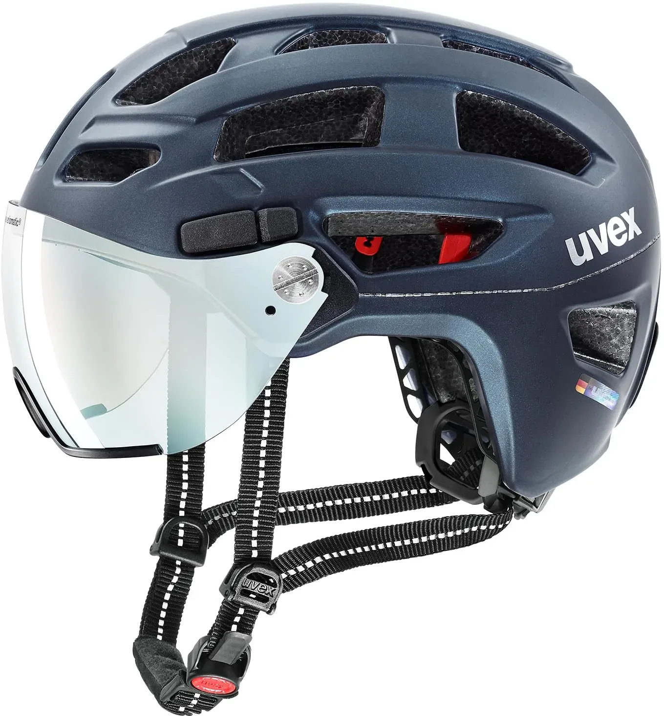 Skifahren & Snowboarden Ski- und Snowboardhelme Gesamtsortiment Sport Wintersport Schutzausrüstung Skihelm - EAN:4043197290232 - Der Uvex hlmt 400 Visor ist ein echtes Multitalent. Er bietet als Visierhelm nicht nur überragenden Schutz und sitzt äusserst bequem, durch eine spezielle Otg Konstruktion können Fehlsichtige ausserdem jede Art von Brille unter dem Visier tragen. Ohne dass etwas drückt oder kneift. Als Uvex hlmt 400 Visor Style wird er nebenbei zum echten Fashion Highlight. Mit einem kuscheligen Innenfutter, modischen Ohrpads und einem matten Finish ist er der Hingucker auf der Piste. Das Visier liegt dabei mit seiner speziell konstruierten Gesichtsauflage angenehm nah am Gesicht. Ein aktives Belüftungssystem sorgt beim Uvex hlmt 400 Visor Style an warmen Tagen für einen kühlen Kopf. Die Belüftungsöffnungen liefern die nötige Frischluft, können aber ganz einfach wieder geschlossen werden, wenn es kälter wird. - gefunden von Kelkoo Dieser Uvex Finale Visor V ist ein hochwertiger City-Helm mit selbsttönendem Visier und integriertem LED-Licht für maximale Sichtbarkeit und Komfort. ![]() ![]() Uvex Finale Visor V - sicherer City-Helm für Damen und Herren - mit selbsttönendem Visier - inkl. LED-Licht - deep Space matt - 52-57 cm