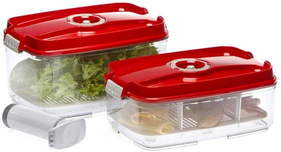 STATUS - EAN: 3831091701647 - Dosen-Set - Material der Dose: Kunststoff, rechteckig, Dichtend, Kratzfest, Vakuum, Stapelbar, BPA-frei und Mit Timer, Deckel: Mit Clip, Material des Deckels: Kunststoff, geeignet für Mikrowelle, Spülmaschine und Gefrierschrank, 3 Dosen Sorgen Sie für Ordnung im Schrank und Kühlschrank, sowie für maximal genutzten Raum und frische Luft. Diese handlichen Boxen für die täglichen Lagerung von Obst, Gemüse, Käse und Fleisch können dabei - bei alza.de - aus Yadore Produktdaten Dieses hochwertige Vakuumier-Set mit Akku-Vakuumpumpe und Borosilikatglas-Dosen ist eine Premium-Option für maximale Frische. ![]() hagengrote .de Hagen Grote Vakuumier-Set - Akku-Vakuumpumpe, 4 Vakuumdosen Borosilikatglas (460ml-1,9l), temperaturstabil, spülmaschinenfest, hält Lebensmittel 8x länger frisch
