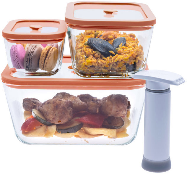 Kategorie: Vorratsgläser - Sendez - GTIN:4260542963690 - Sendez Vakuumbehälter 3 Vakuumdosen mit Pumpe Glas Vorratsbehälter Vorratsgläser - 22,99 Euro bei OTTO - gefunden von billiger.de Dieses 2er-Set ist eine gute Option für kleinere Haushalte oder als Ergänzung zu bestehenden Vakuumiersystemen. ![]() ![]() Livoo Satz mit 2 Vakuumdosen, Vorratsbehälter, Transparent