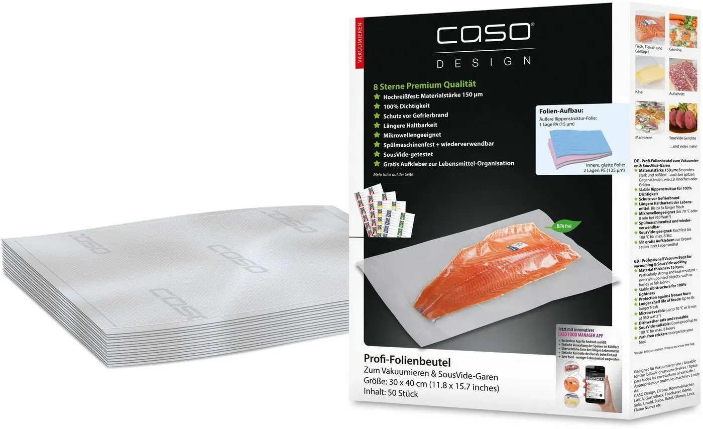 lieferbar-in 2-3 Werktagen bei dirCASO Design Caso Vakuumierbeutel 1220, Zubehör für alle handelsüblichen Balken Vakuumierer, 50 Stück weiß