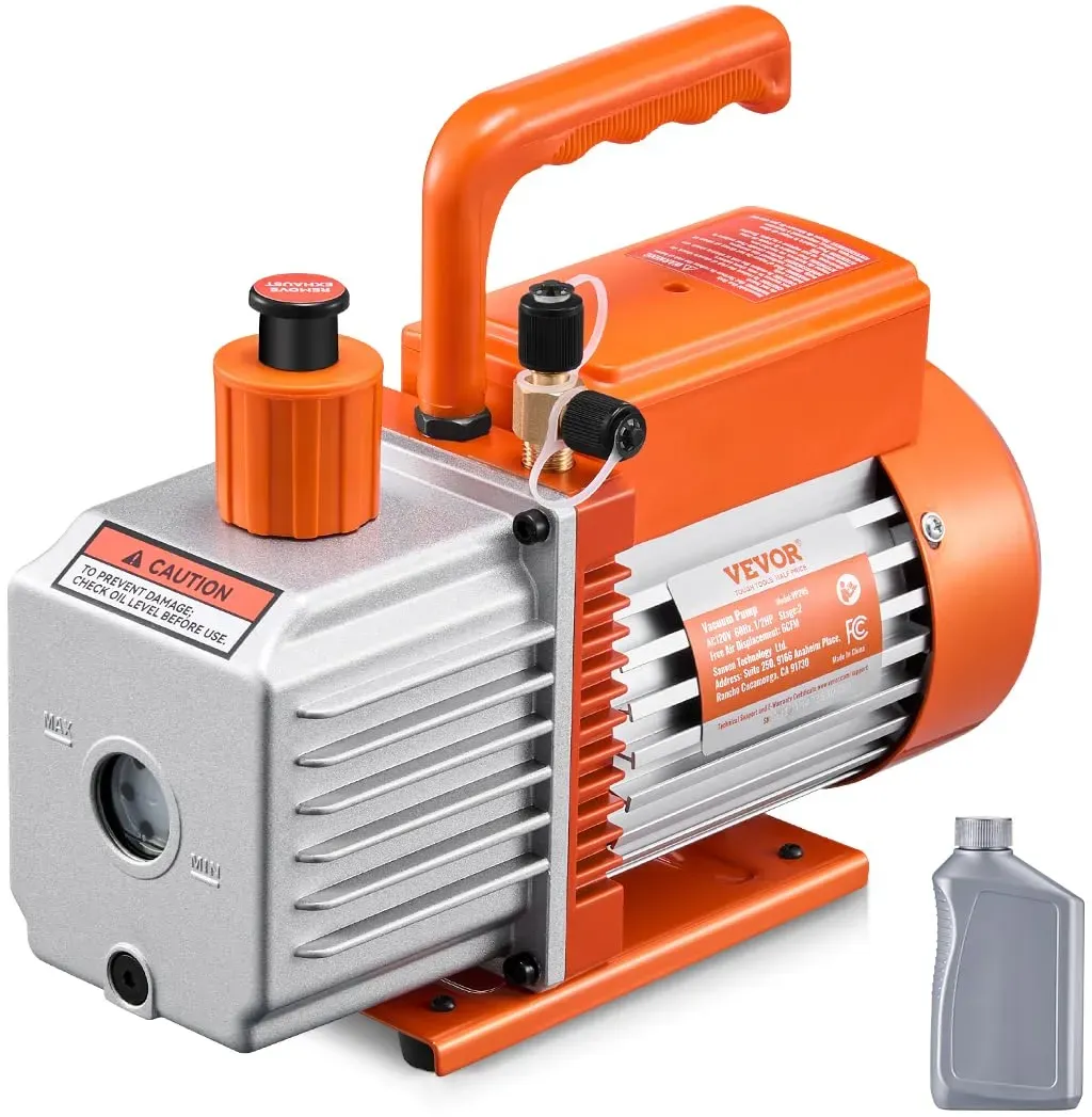 Kategorie: Druckluftzubehör - Vevor - GTIN:0197988480921 - Starke Leistung: Mit einem robusten Motor aus reinem Kupfer sorgt unsere 2-stufige Drehschieber-Vakuumpumpe mit 6 CFM für eine schnelle, effiziente Evakuierung und erreicht ein beeindruckendes Endvakuum von 0,2 Pa. Sie ist ideal für HLK-Dienste und sorgt für eine gründliche Systemreinigung, sodass Sie schneller und effektiver arbeiten können. Stabiler, zuverlässiger Betrieb: Angetrieben von einem leistungsstarken 4-stufigen Motor aus reinem Kupfer bietet diese Klimaanlagen-Vakuumpumpe lang anhaltende Leistung und Effizienz. Der eingebaute Kühlventilator verhindert eine überhitzung und gewährleistet eine gleichbleibende, zuverlässige Leistung auch bei längerem Gebrauch. Außergewöhnliche Kompatibilität: Diese HVAC-Vakuumpumpe ist mit 1/4 Zoll SAE- und 3/8 Zoll SAE-Anschlüssen ausgestattet und funktioniert nahtlos mit einer Vielzahl von Systemen, einschließlich Kfz- und Kleinkühlsystemen mit R22, R134a und R410a. Egal, ob Sie Autos oder HVAC-Geräte zu Hause warten, die Arbeit wird mit Leichtigkeit erledigt. Benutzerfreundliches Design: Ausgestattet mit einem ölfassungsvermögen von 0,27 qt. (260 ml) und einem sichtbaren ölfenster war die überwachung des ölstands nie einfacher. Sie wissen immer, wann es Zeit zum Nachfüllen ist, damit alles reibungslos läuft. Außerdem haben wir eine Flasche Vakuumöl mit 0,35 qt. (330 ml) beigelegt, damit Sie gleich loslegen können. Vielseitig für jeden Job: Ob Sie an der Wartung von ... Diese 2-stufige Vakuumpumpe von vidaXL bietet eine höhere Leistung für anspruchsvollere Anwendungen und schnellere Evakuierung. ![]() Manomano.d e